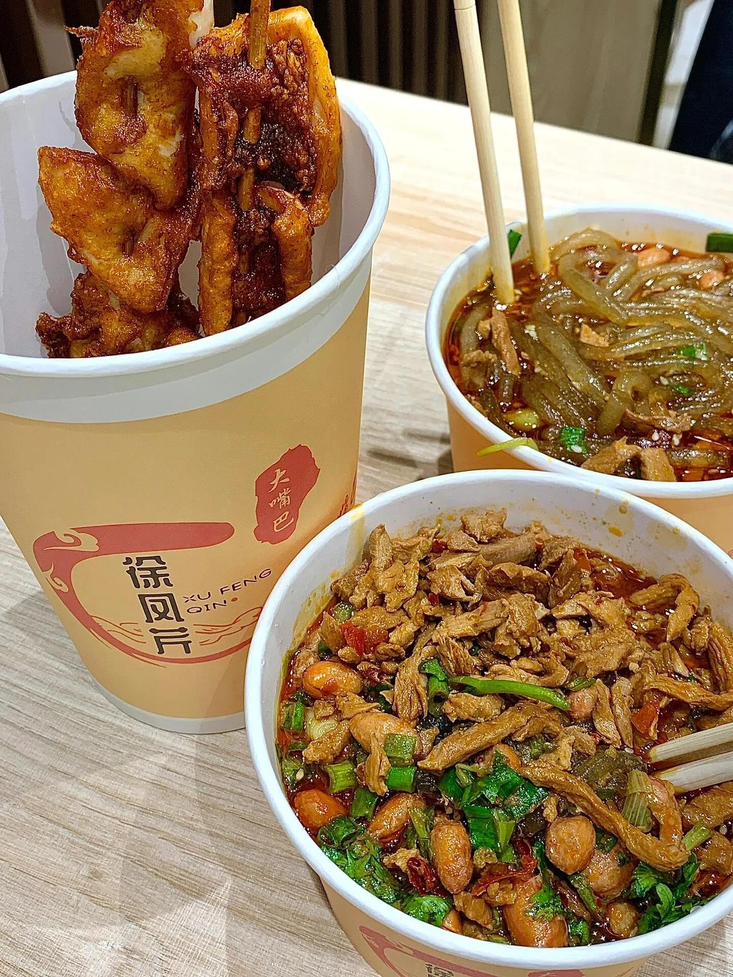 晚上先去吃了徐凤芹酸辣粉,肉超多!而且很便宜 ,去的有点晚只剩下鱿鱼了,两份酸辣粉和两个鱿鱼才30,物价真的哭死。