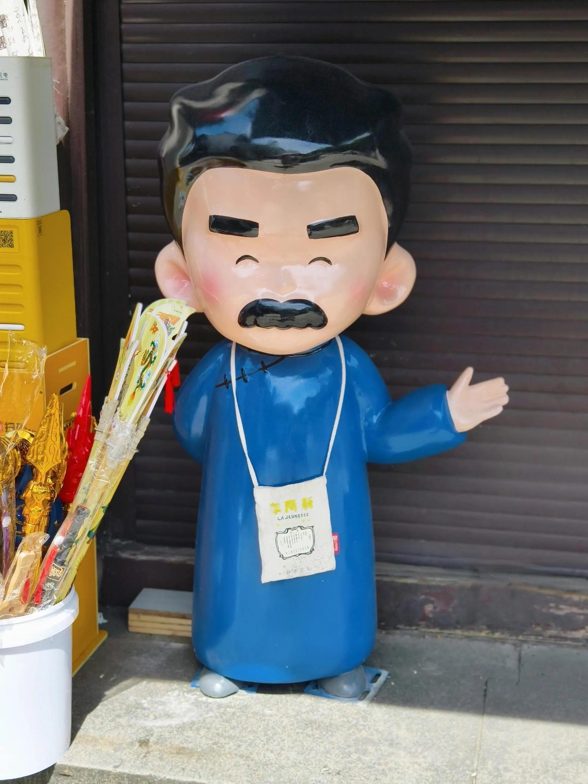 这次旅行最大的惊喜莫过于遍布小镇的Q版鲁迅形象,可爱得让人忍俊不禁!我们在百草园门口、文创奶茶店、崇德堂以及仓桥直街等多处发现了这些萌趣十足的鲁迅雕塑。有时还能遇到cosplay鲁迅的人偶,可以合影留念。