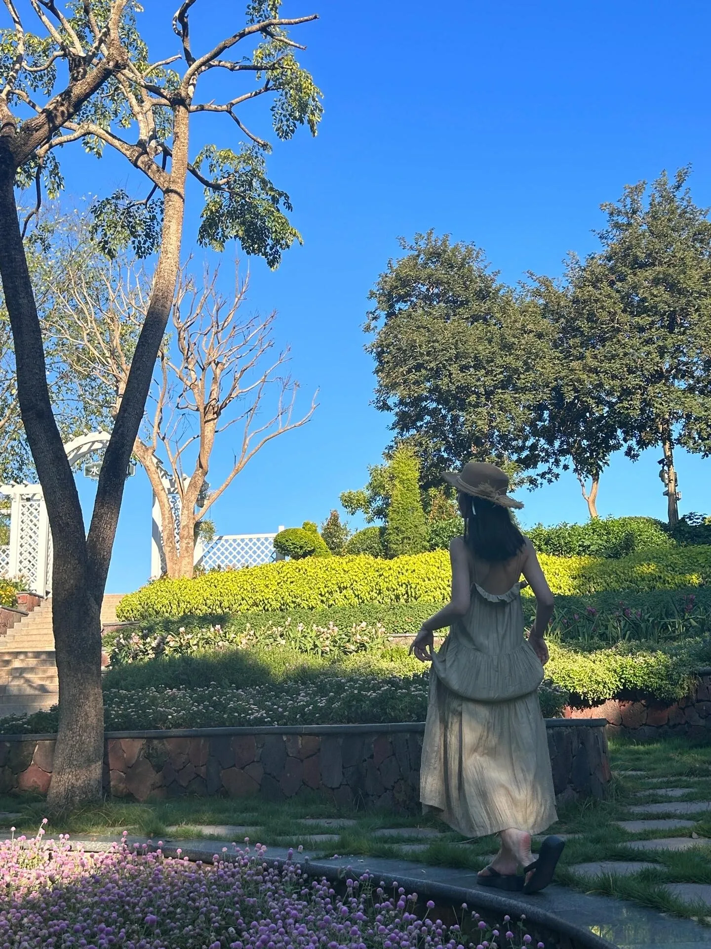 返回北门后,可以购买小火车票(10元/人)前往叶子花园,也就是著名的“ 莫奈花园 ”。这里的花景最佳观赏期要早一些,九月初花期已过。建议在傍晚6点左右到访,此时阳光洒在花间,景色最为动人。不过要注意把握时机,因为太阳落山很快。