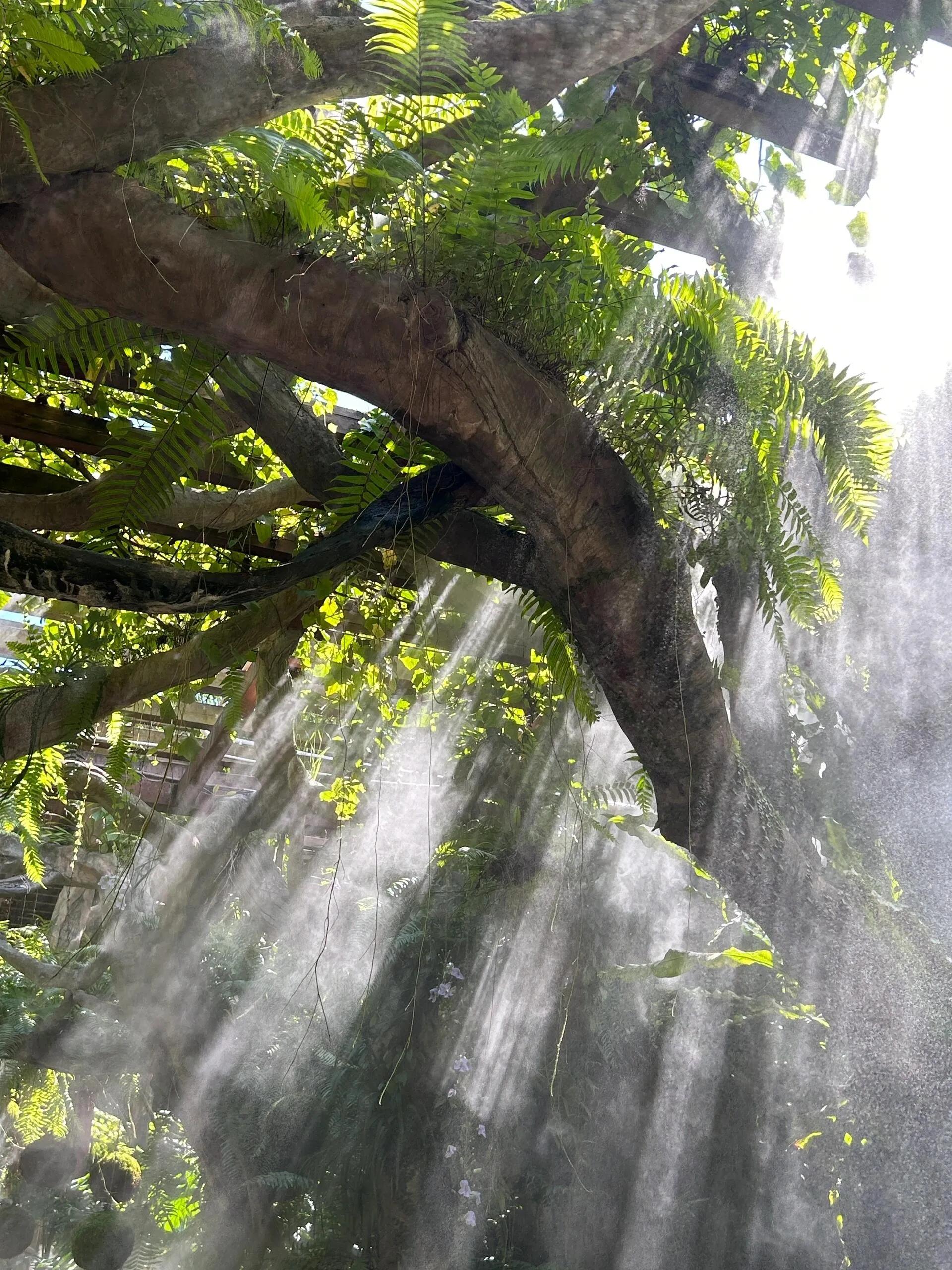 首先从北门进入青秀山景区,门票可在美团上购买,每人18元。进入后按指示牌直走,很快就能到达 荫生植物园 。这里是整个青秀山最具特色的景点之一,园内每隔几分钟就会喷洒水雾,营造出一种梦幻般的氛围,非常适合拍照。