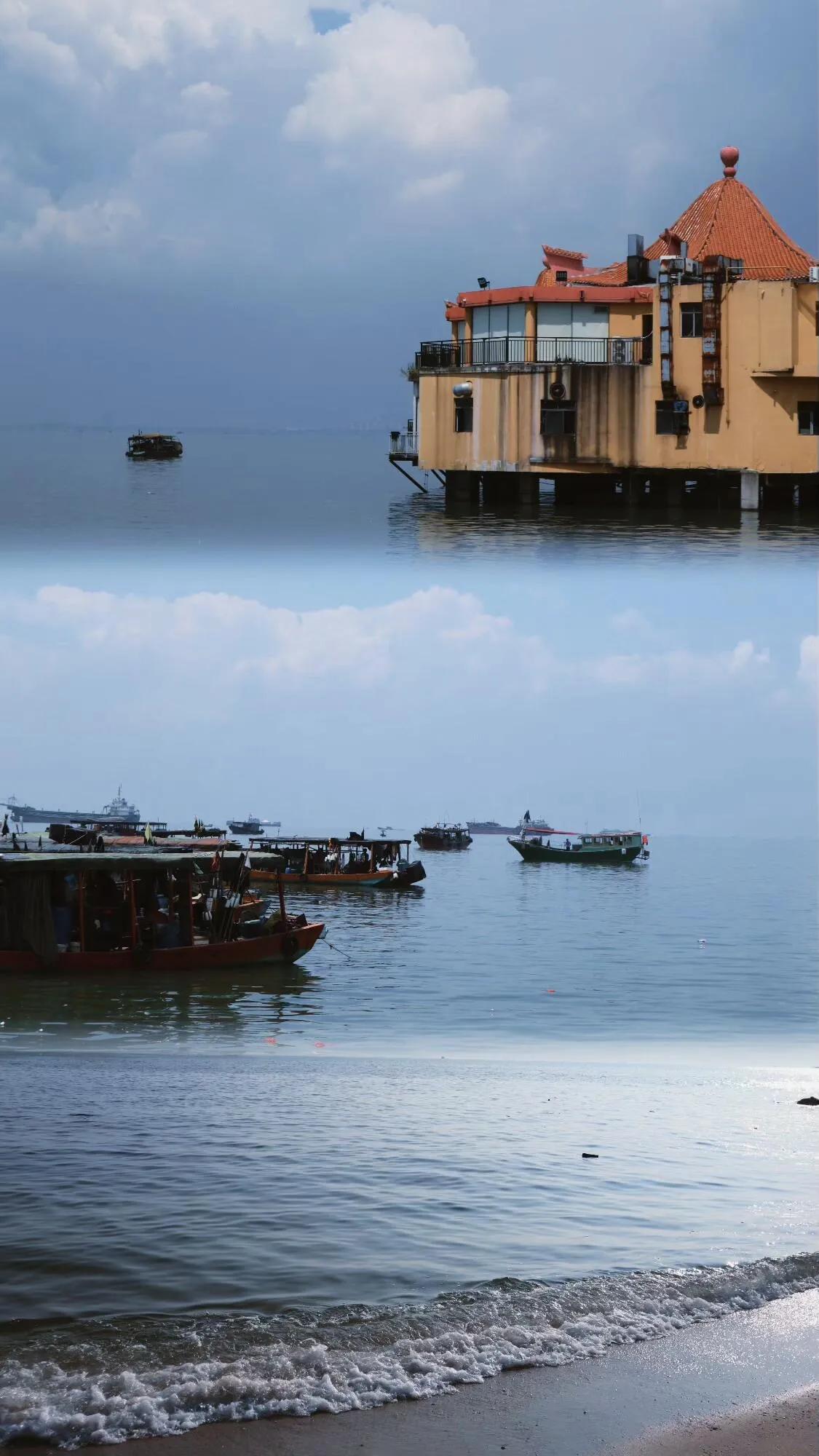 行程第一天中午到达民宿,选择的是北部湾1号附近。民宿楼下就是海,景色宜人,但离其他景点稍有距离。不过如果会骑电动车的话,出行还是很方便的。