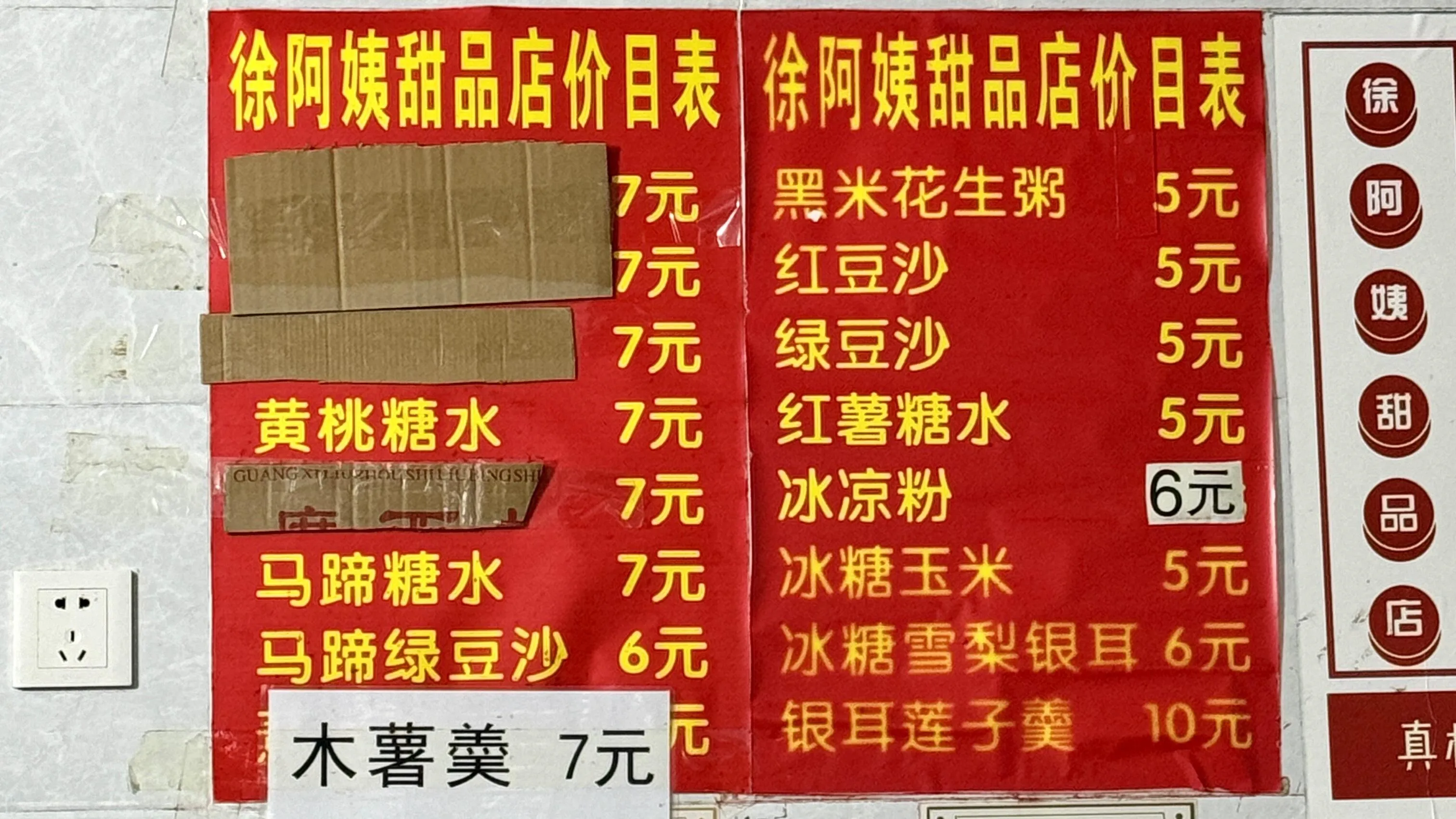这是只有本地人才知道的老字号巷子甜品店。相比苏家的甜品,徐家的甜度刚刚好。夏天推荐冰凉粉(6元),很受欢迎。我个人更喜欢苏家的冰渣凉粉,量大又便宜。红豆沙/绿豆沙(5元)口感沙沙的,冰的更好吃。芝麻花生双拼(7元)热的很香。秋冬可以尝试西米香芋/木薯羹(7元),香糯的荔浦芋头真的很棒,木薯羹也不错。还有红薯糖水(5元),带点姜味。