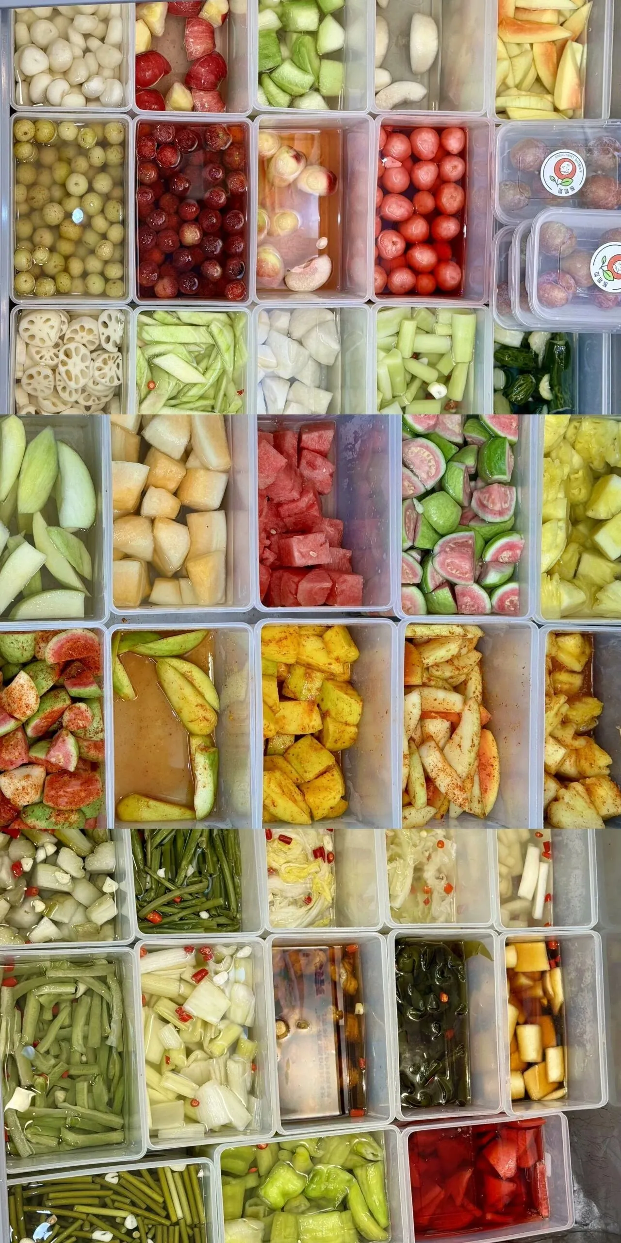 这家店是称斤售卖,品类丰富。推荐干拌、菠萝和芒果(正方形的)。酸甜微辣的口味很开胃。