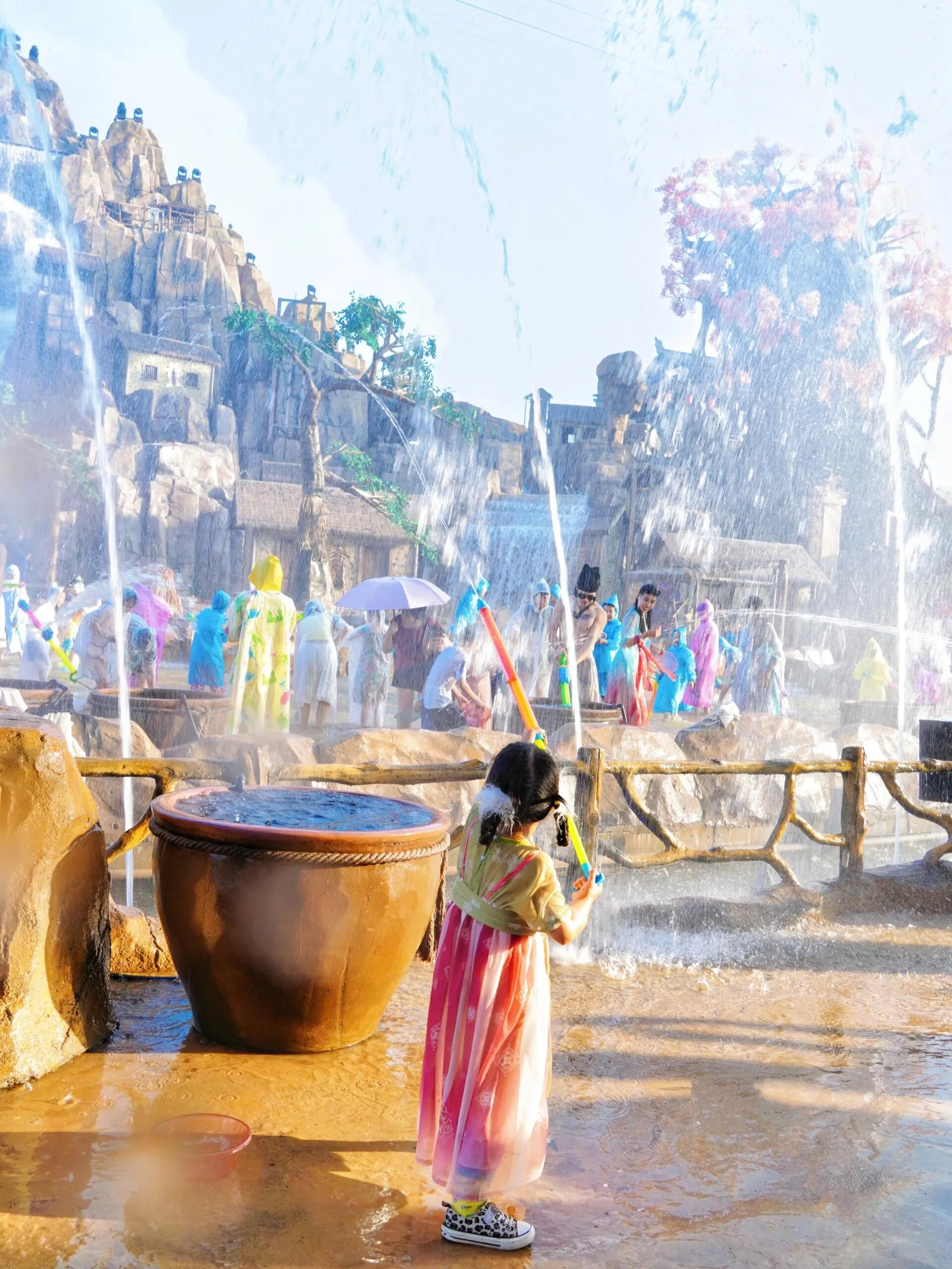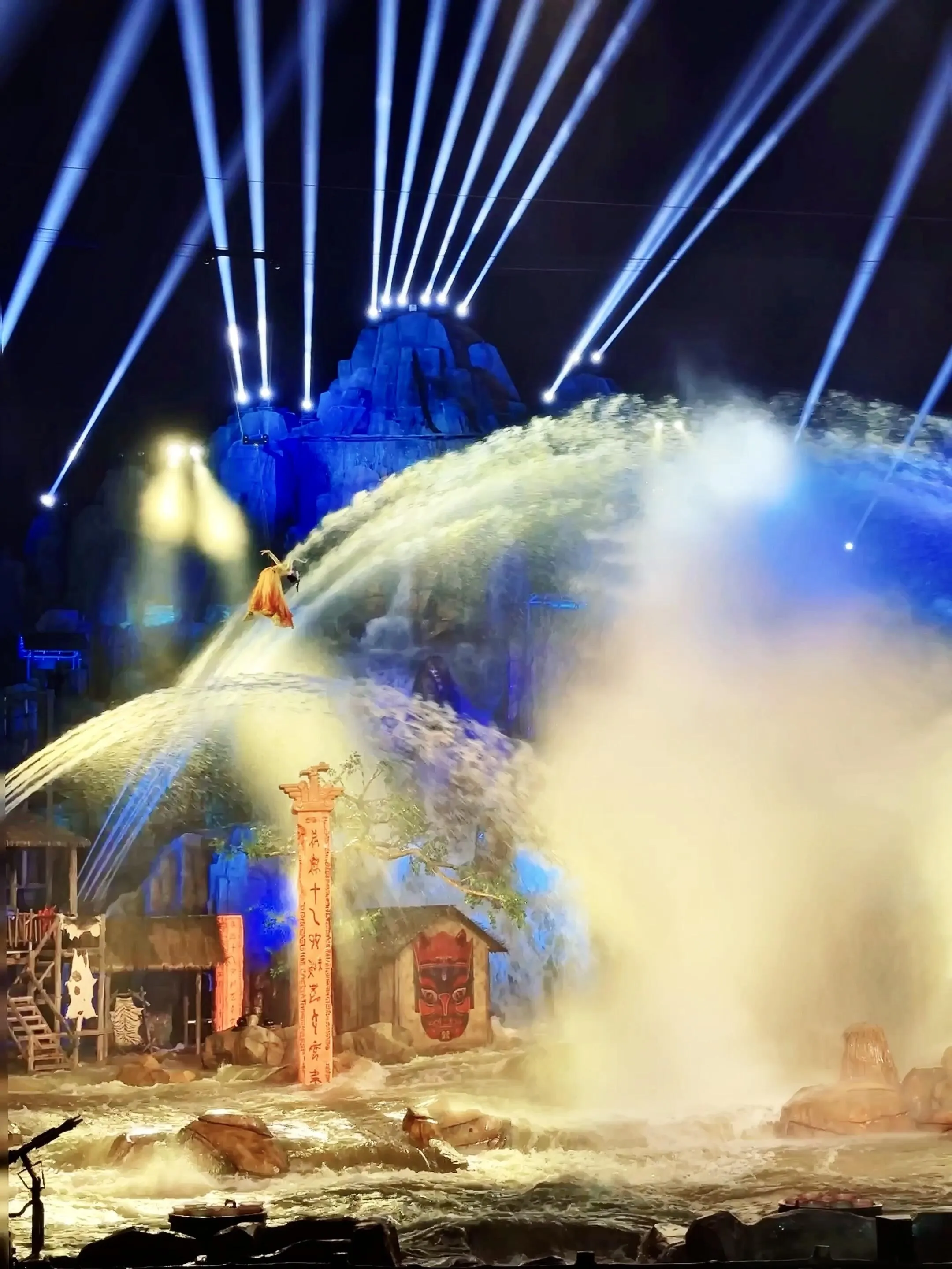 《水秀》:水舞灯光秀,讲述了金雀和银雀舍身救水的故事。尤其是最后一幕,水瀑高悬,灯光闪烁,很惊艳!小朋友也能理解剧情。
