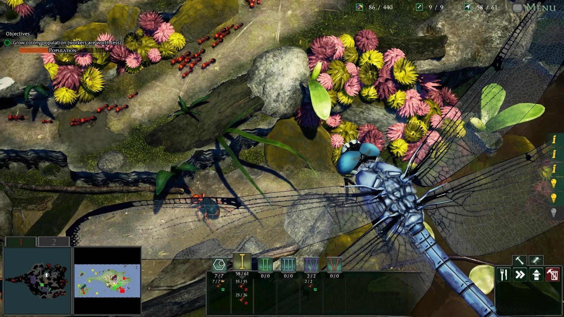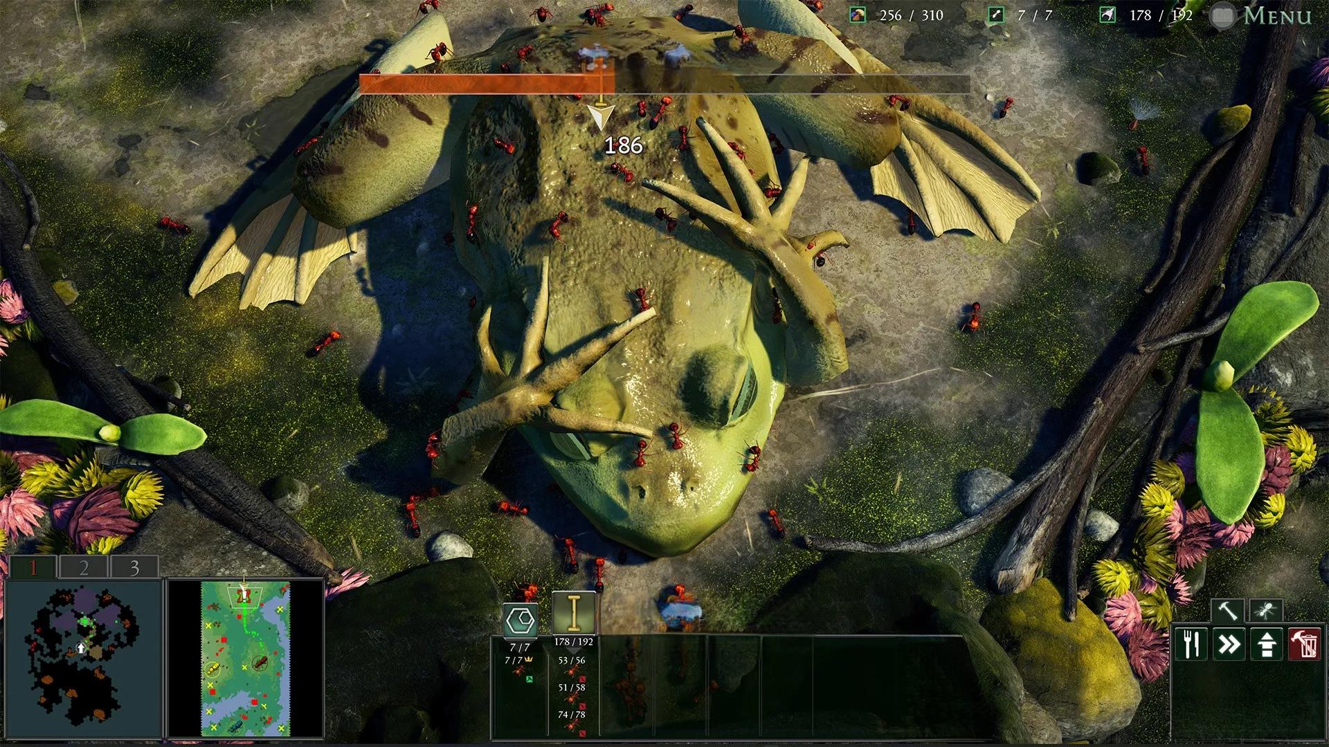 游戏的核心玩法是让玩家扮演蚁后的角色,通过信息素间接指挥蚁群在地下和地上扩展领土、获取资源、抵御天敌。这种设计不仅符合蚂蚁的生物学特性,也为玩家提供了一种全新的战略体验。玩家需要在黑暗未知的地下世界中挖掘隧道,建立储存食物的房间和孵化各种单位的房间,合理规划蚁巢的布局,有效地分配蚂蚁进行资源收集和战斗。