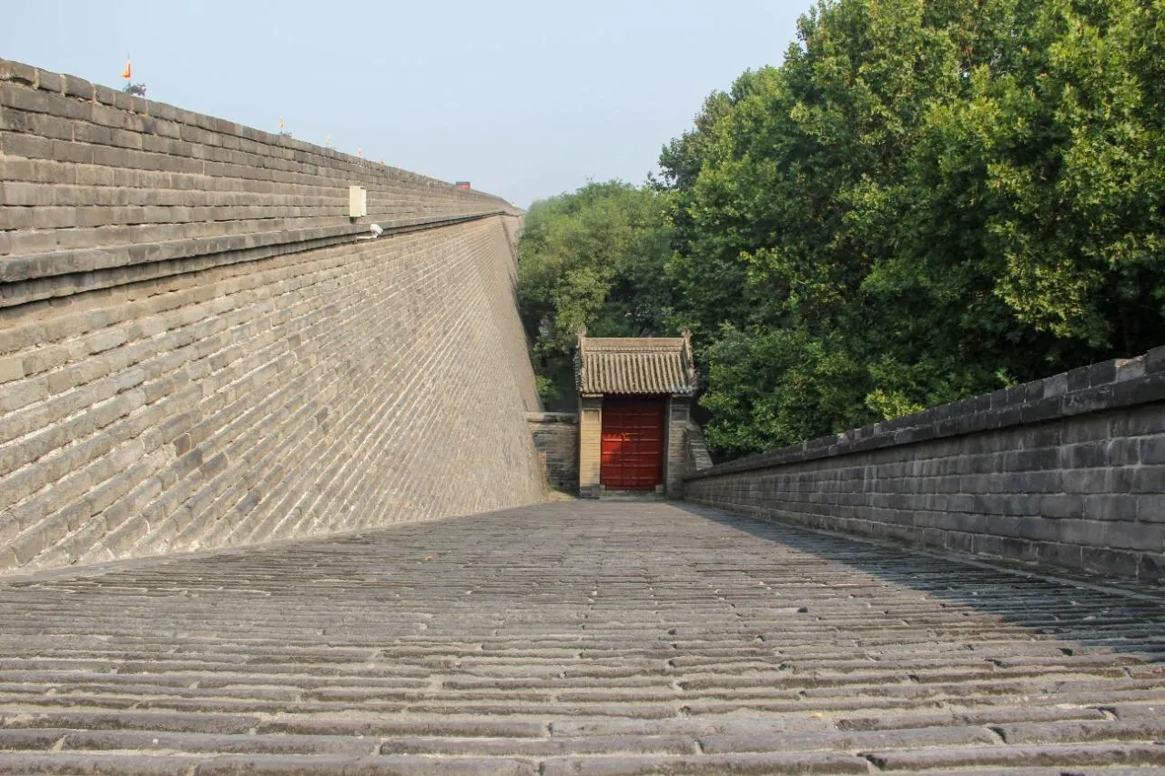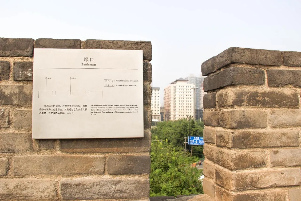 早上七点半到达西安后,我简单休整了一下,就从尚德门右侧购票登上了西安古城墙。站在城墙上,最先映入眼帘的是开阔的海墁。 海墁由外墙(垛墙)、内墙(宇墙)、三合土、三层青砖和流水槽五部分组成 ,构造精巧。