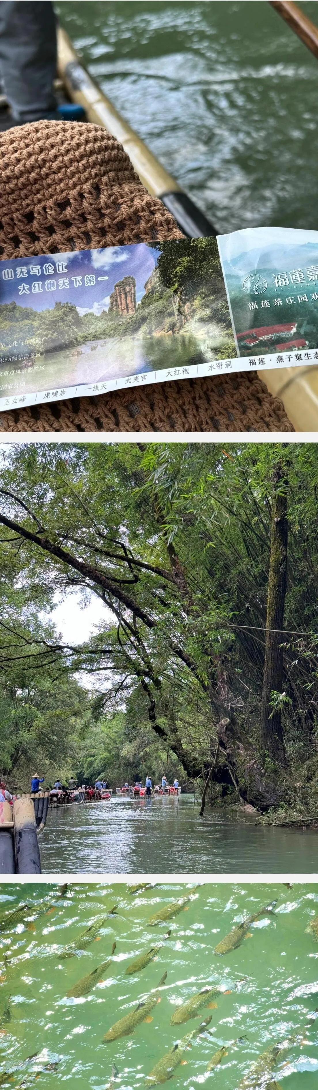 早上乘坐竹筏(7:20或8:20),建议带些鱼食,溪里鱼很多。景区会安排8人一组。天气凉爽舒适,很是惬意。