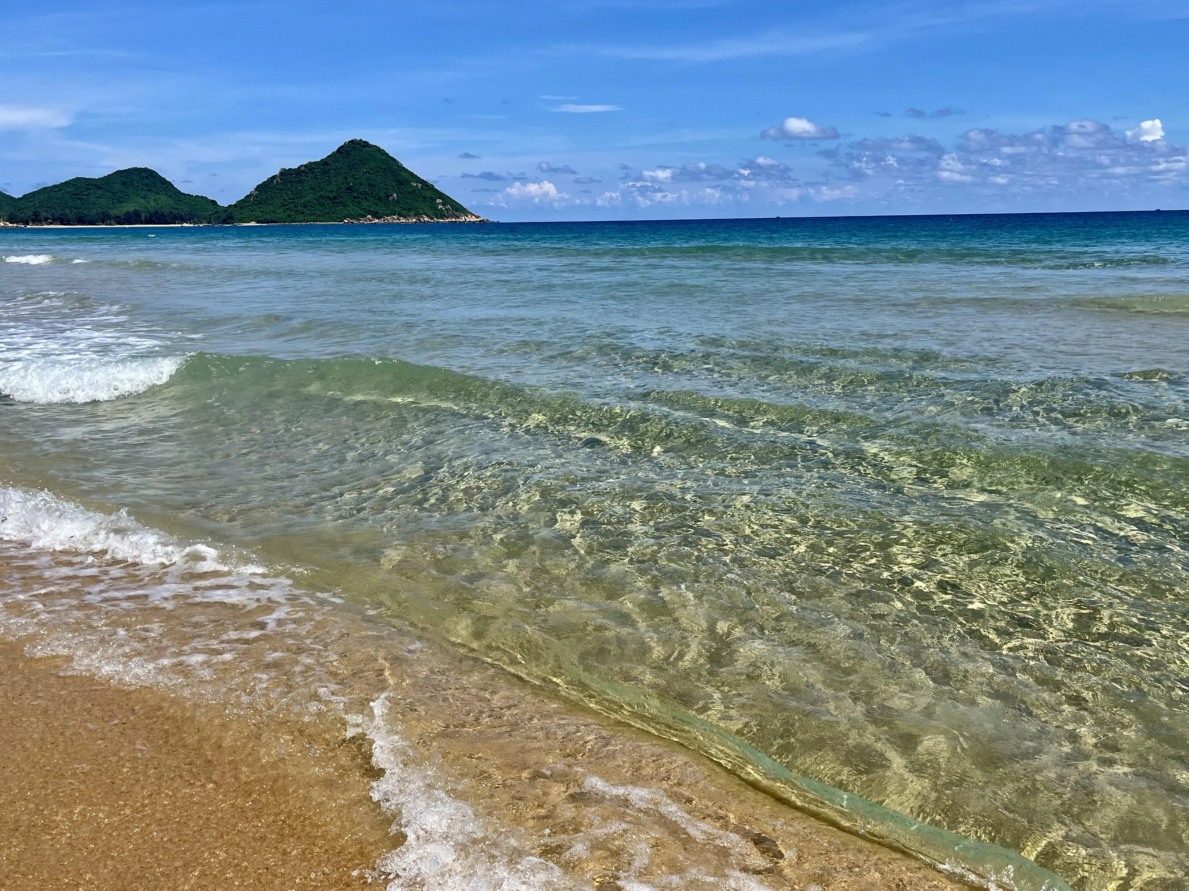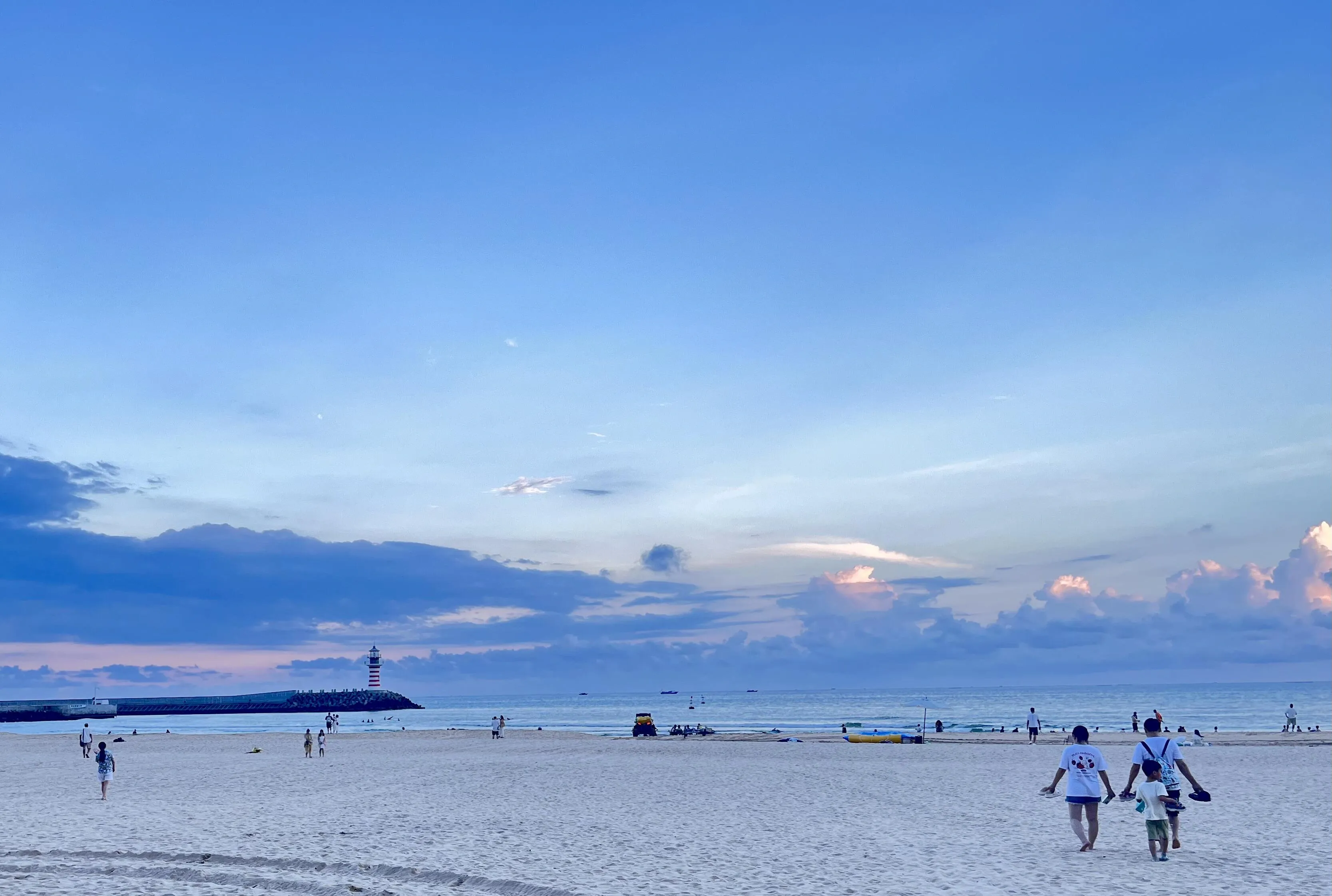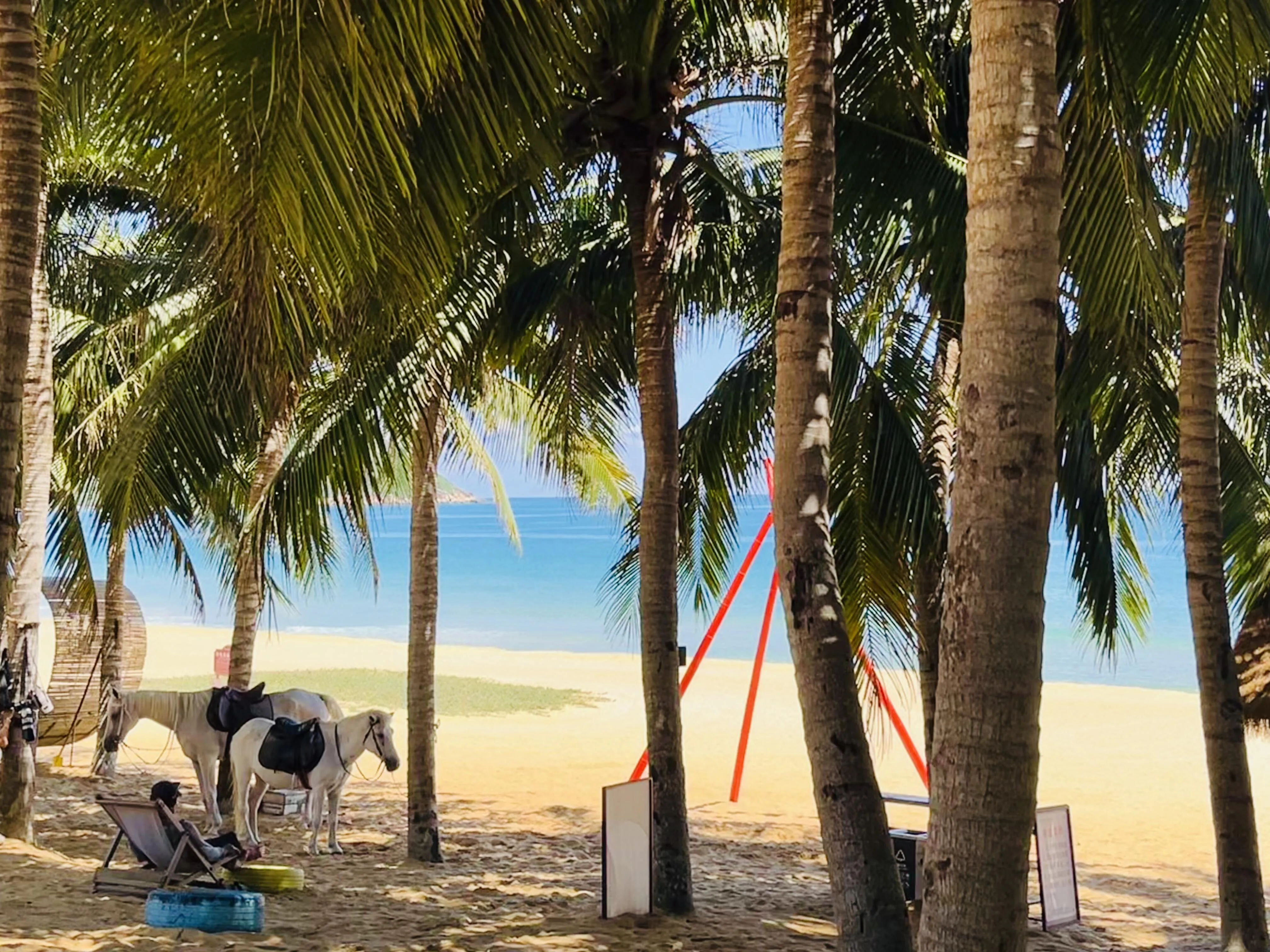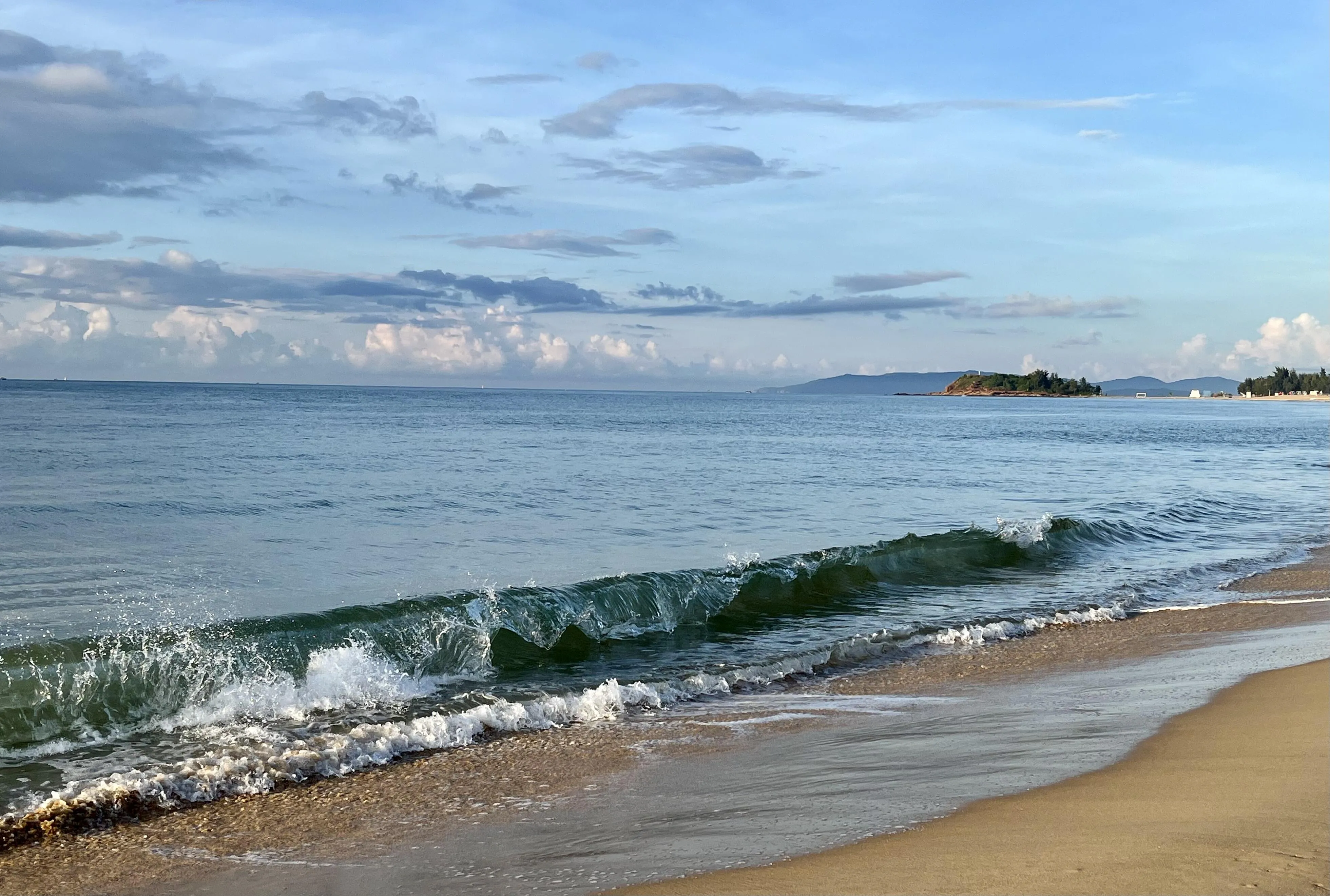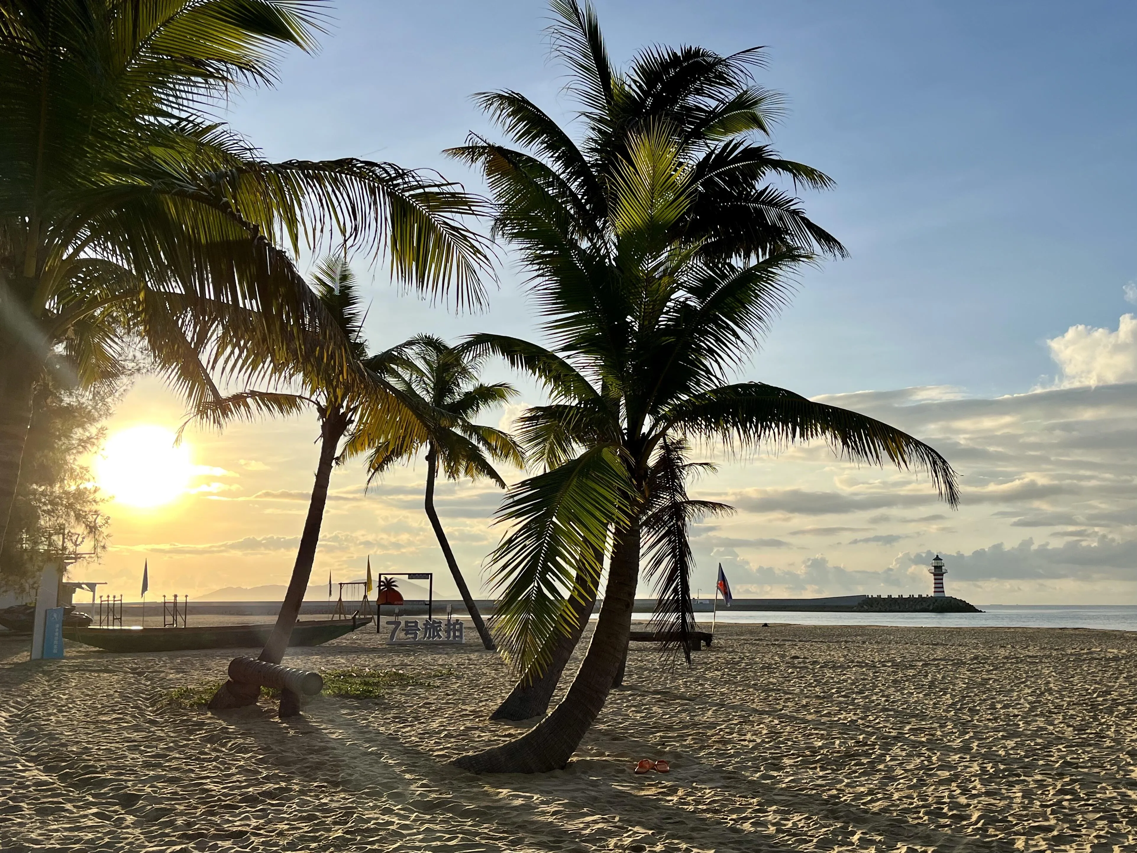 最后一站是陵水的清水湾。这里的沙滩细腻如淀粉,踩上去非常舒服。在瀚海沙滩附近还有一座灯塔,周边的美食街提供了丰富的当地美食选择,比如陵水酸粉,虽然可能不是每个人都能适应其口味。