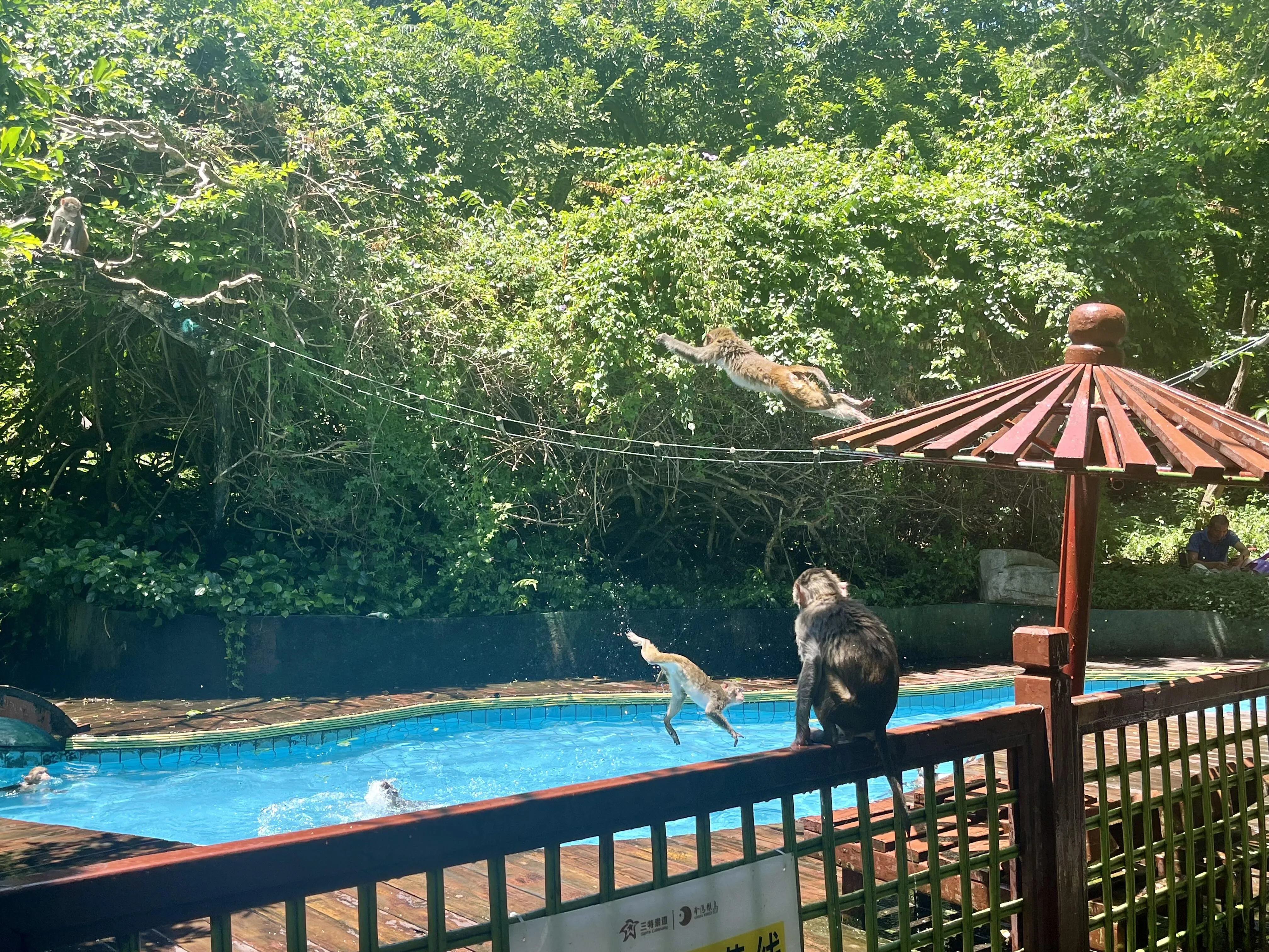 猴岛上生活着约2000多只猴子。岛上最高处的猴子经过训练,表现得非常乖巧,喂食时也很有礼貌。不过在下山时要小心,有些调皮的猴子可能会抢走游客的东西,虽然有保安驱赶,但还是要多加小心。看完猴子表演后,简单逛了逛就乘缆车返回了。