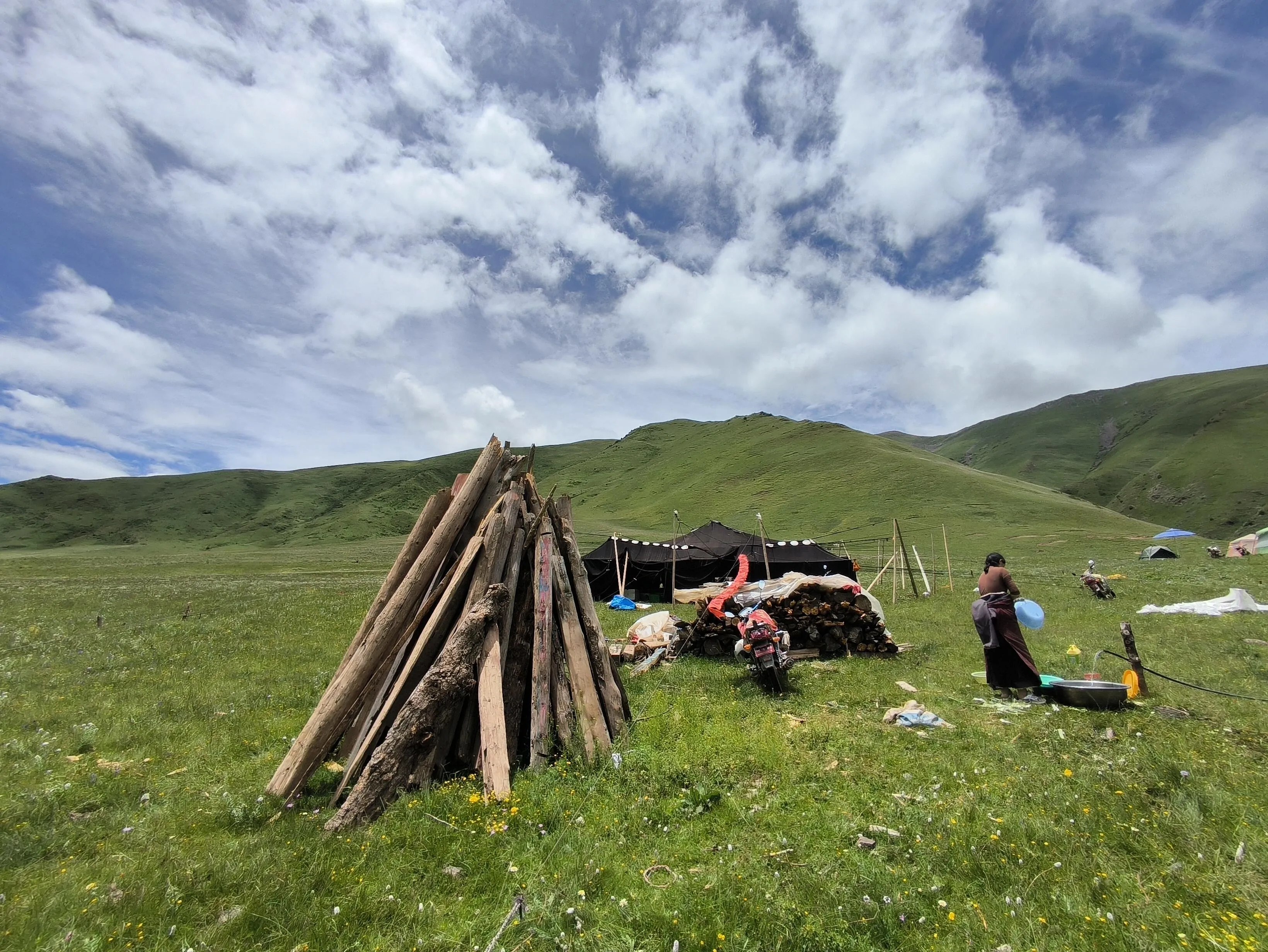 初到藏地的第一晚,在庙子旁的藏民家中享用了炒菜。主人家还准备了一盘类似油炸灶果的小吃,让人想起汉地过年时家家户户炸的面粉果。这种细心的安排,让初到高原的客人倍感温暖。