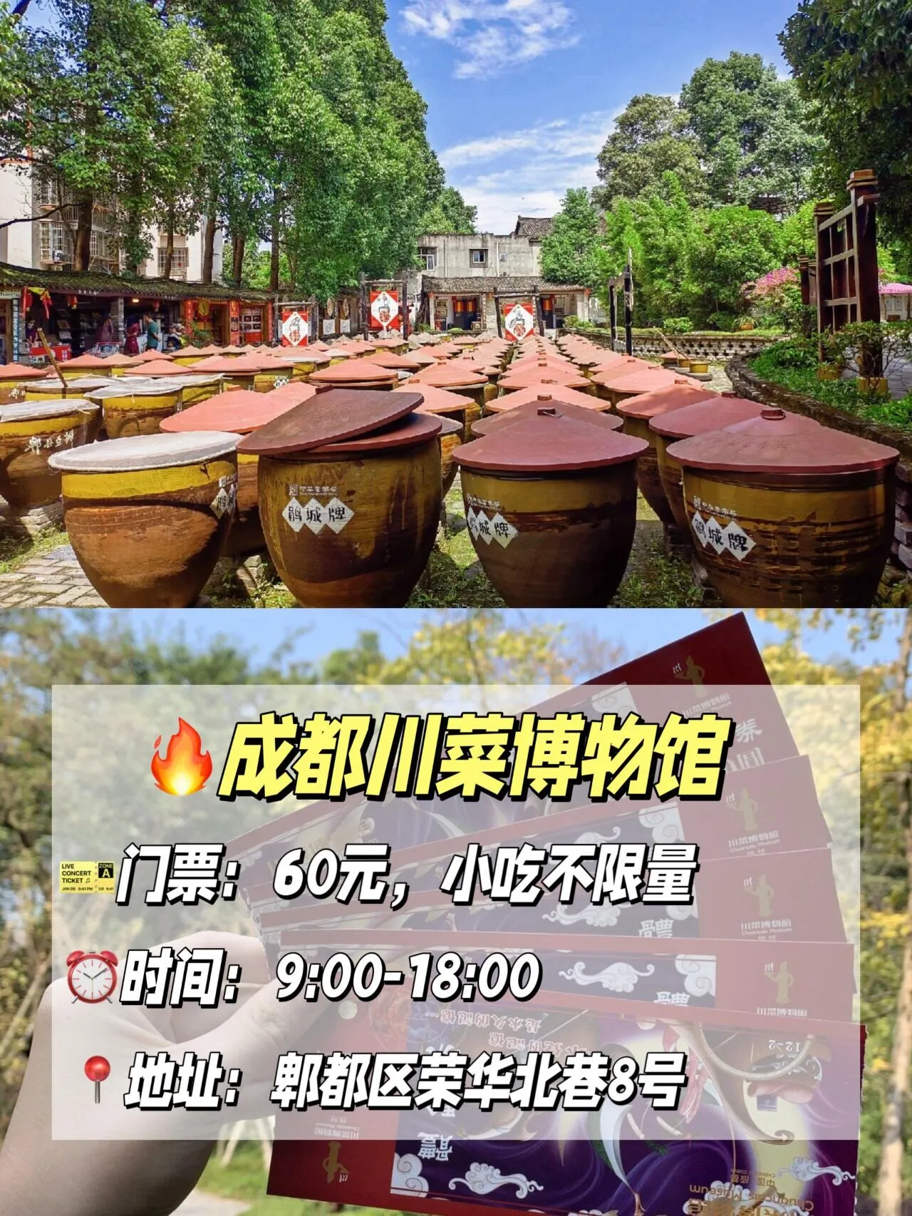 成都川菜博物馆:门票60元/人,被称为“一座可以吃的博物馆”。小吃不限量供应时间为11:00-17:00。