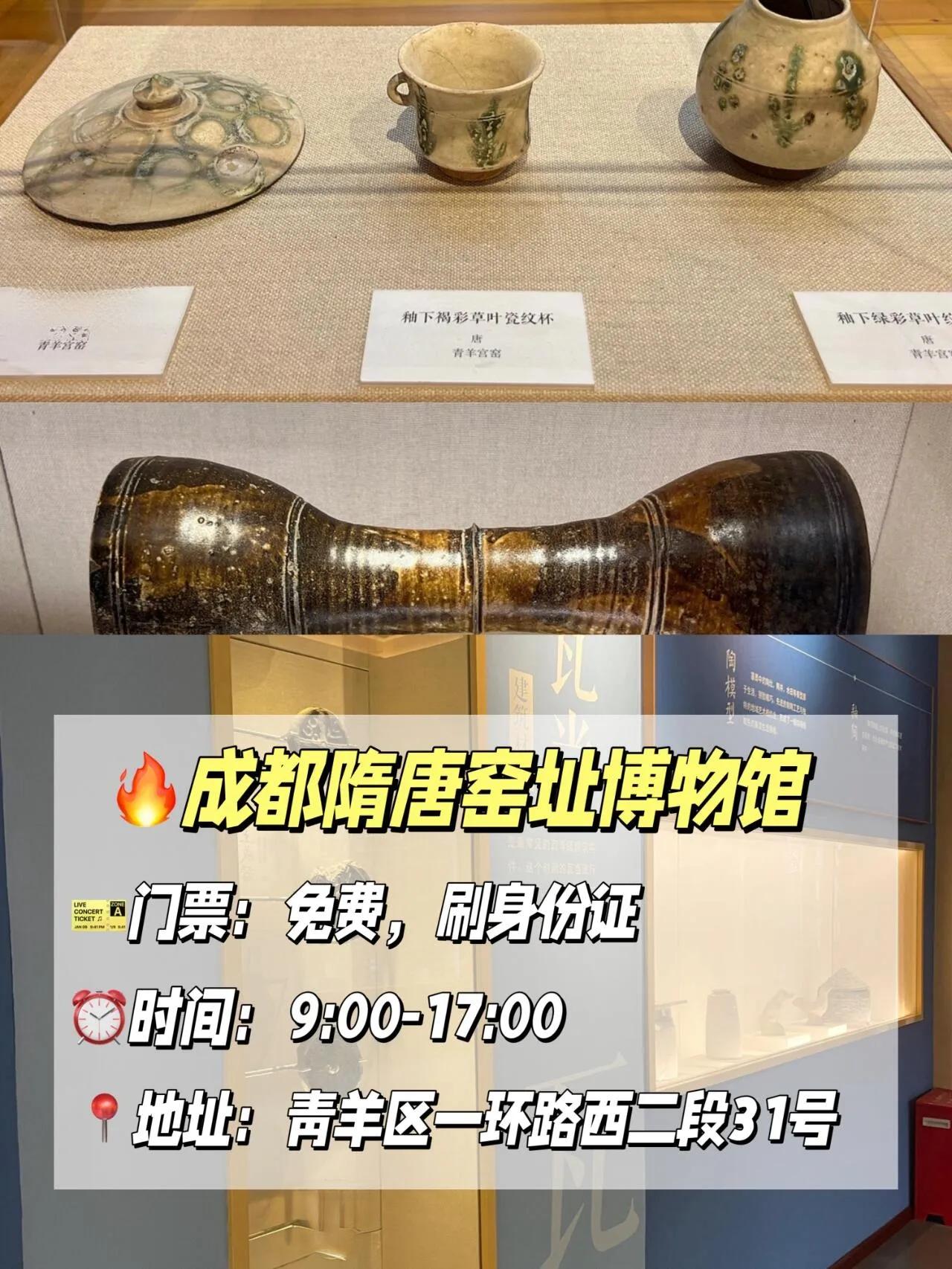 成都隋唐窑址博物馆:免费参观,可提前在公众号预约或现场刷身份证进入。位于地铁2号线中医大省医院站G口出,步行400米即可到达。