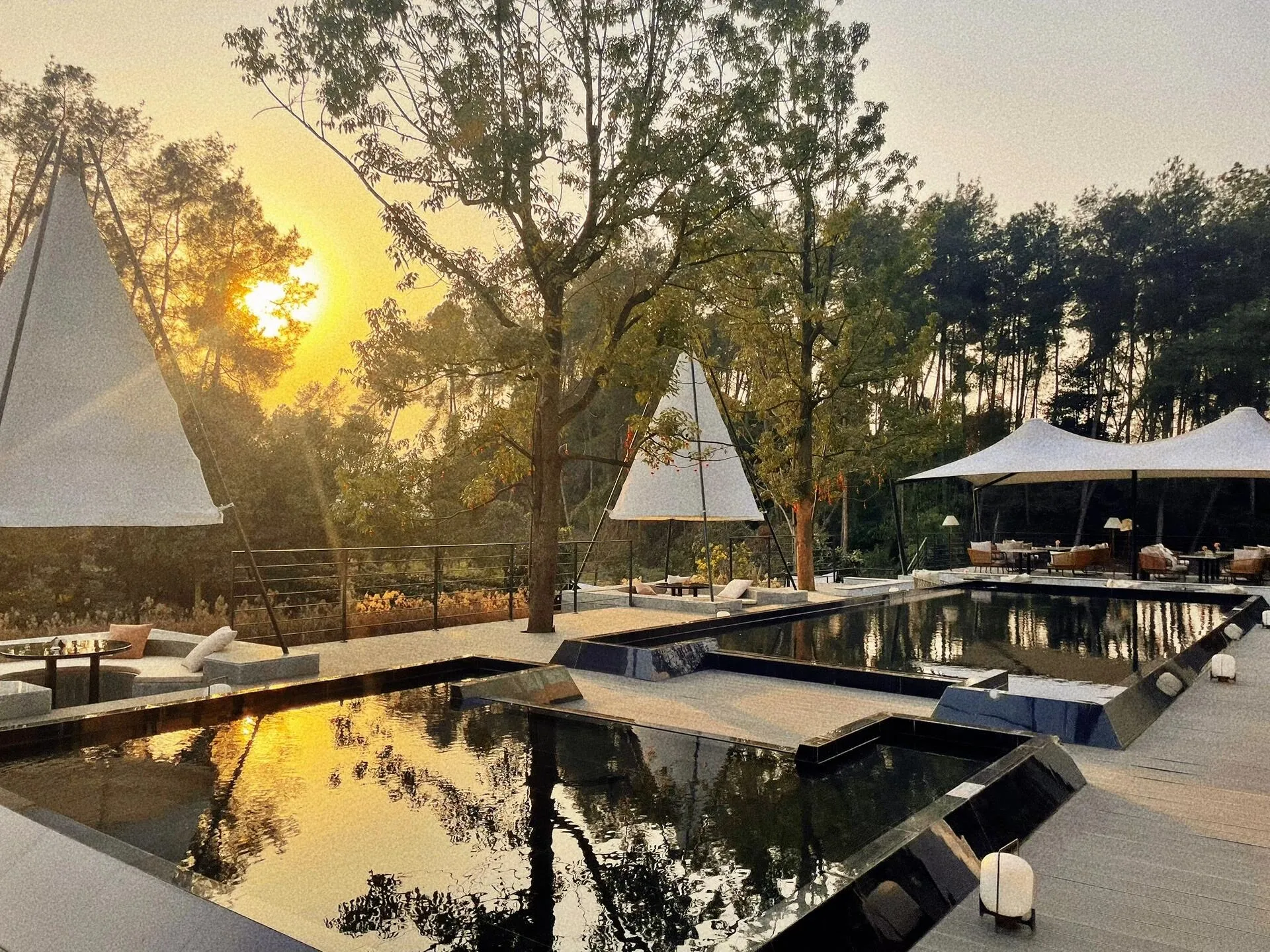 夏季带孩子出游,玩水是必不可少的。 这里的泳池每天换水一次(冬季则是温泉) ,干净卫生,对于过敏体质的孩子来说尤其重要。酒店周边还有不少可以游玩的地方。 明月村里有陶艺、染布和茶艺等体验活动 ,能让孩子们接触不同的乐趣。