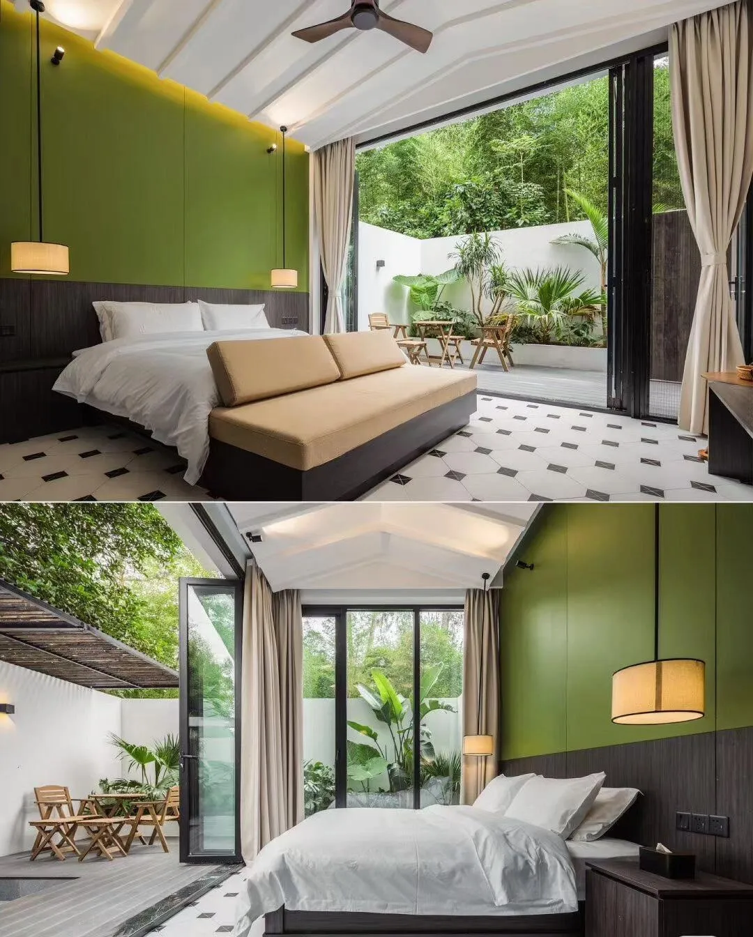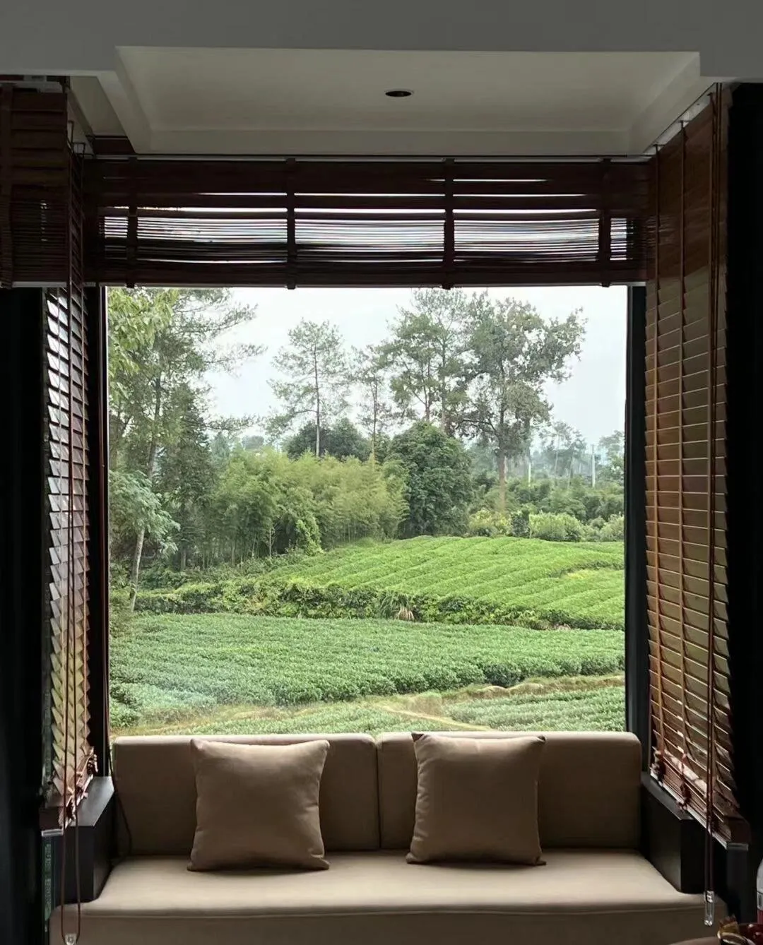 酒店坐落于茶场环绕之中, 环境宁静,非常适合放松身心。 从酒店望去,满眼皆是清新怡人的景致。酒店本身以绿色调为主,设计雅致,随处可见适合拍照的角落,无需滤镜就能拍出美照。