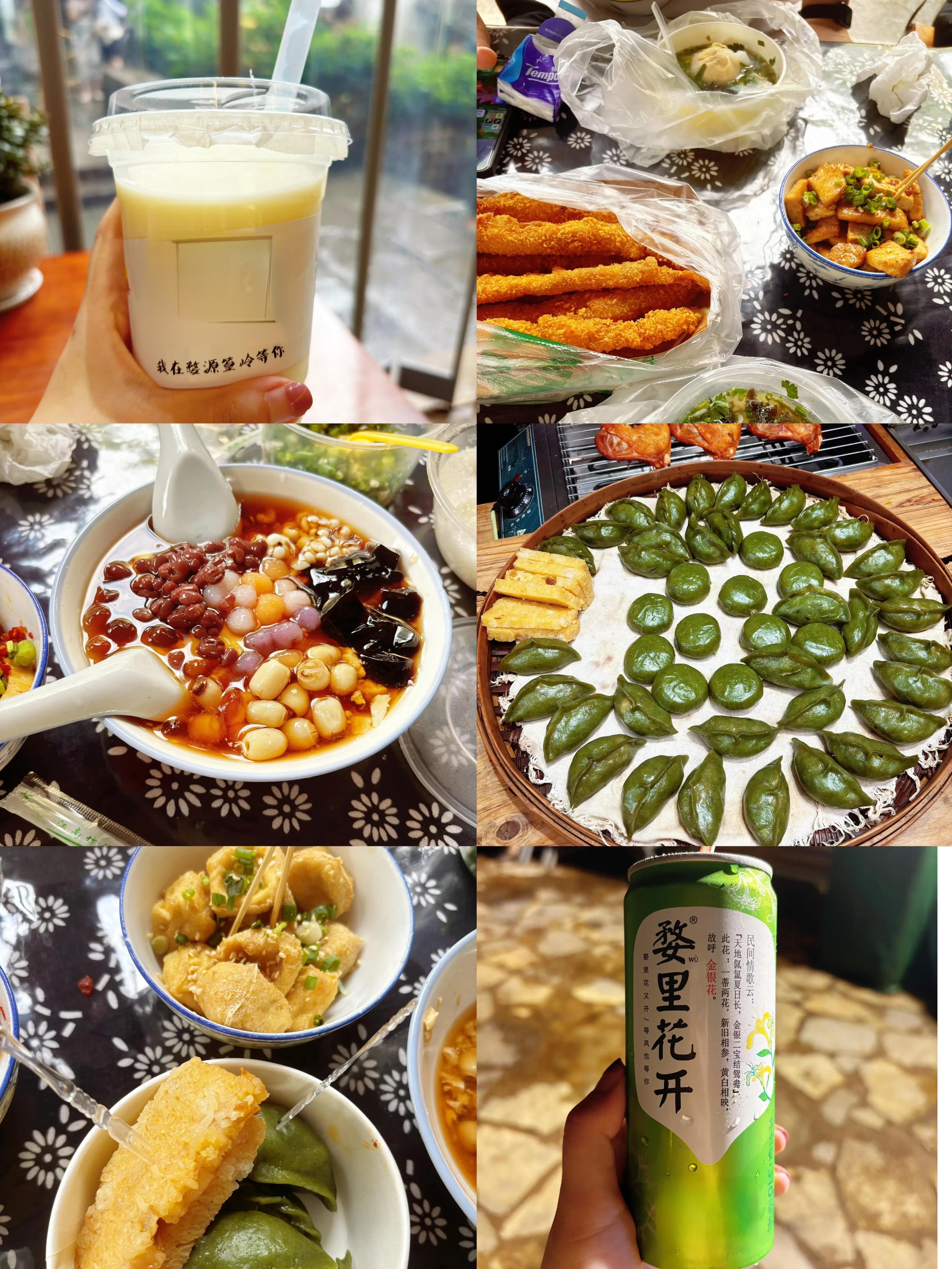 在婺源景区,游客可以品尝到多种特色小吃。 灌蛋、柴火豆腐和饺子耙都是当地的传统美食 ,值得一试。 “婺里花开”是一种小甜水,可以解渴提神 。不过需要注意的是,炸茄子可能不太推荐,因为裹的面似乎有些过多。