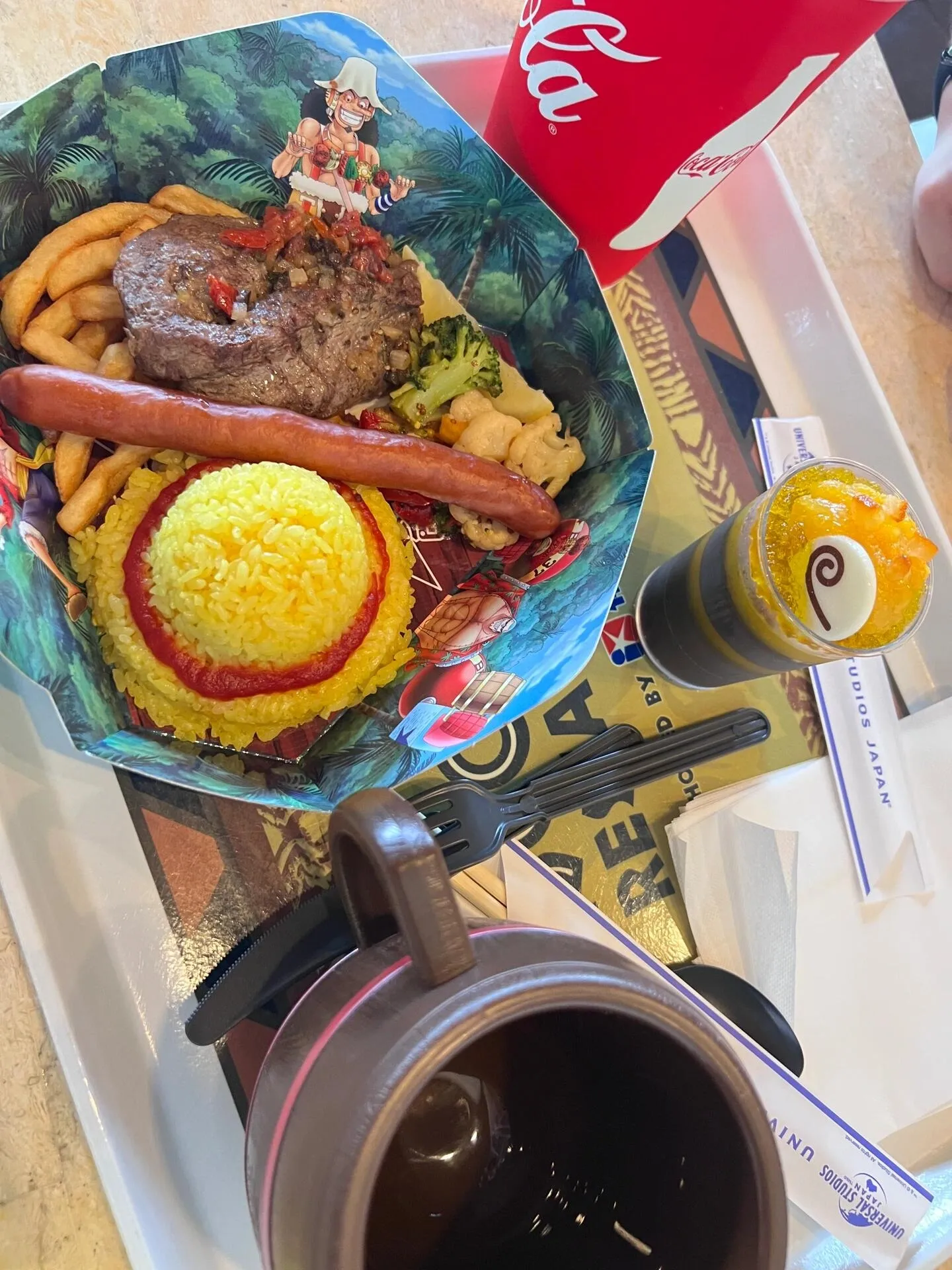 离下一个优速通中间有两个多小时的时间,老公是海贼王迷,必须打卡海贼王餐厅。味道还行,可以去打卡。然后去了这天排队最久的项目——侏罗纪园区的飞天翼龙过山车,这是USJ最刺激的过山车了。全程你是俯身飞行姿势,在空中还会360度旋转到坐姿。这个排队加玩完大概一个小时。