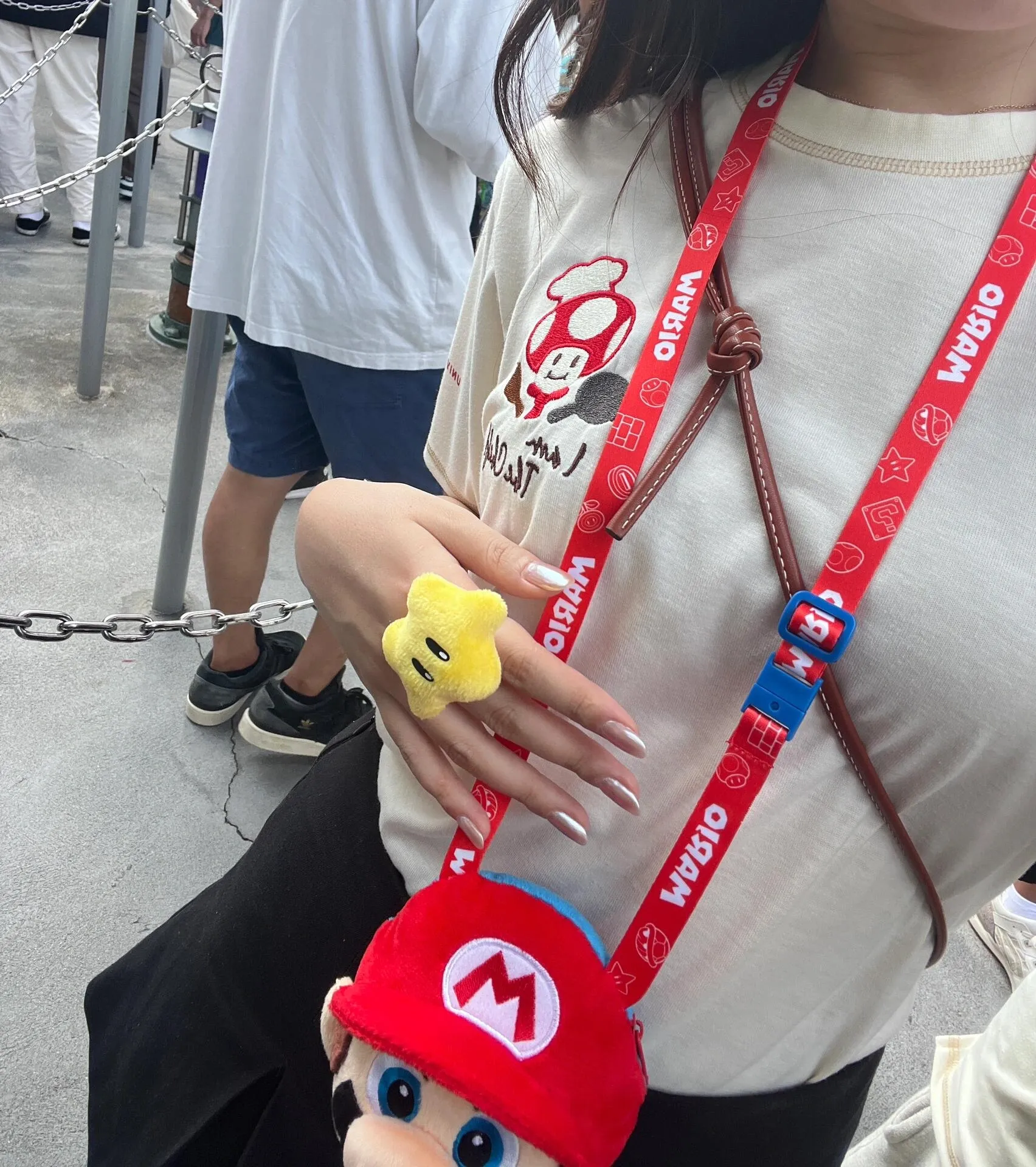 买了点周边就去最期待的任天堂园区了!这里人巨多!想了一下没买手环,因为互动的项目都大排队。蘑菇餐厅听说味道一般就没去排队预约。我们在园区其实只停留了一个小时,任天堂真的好好买!我跟老公直接换了件情侣T出来。