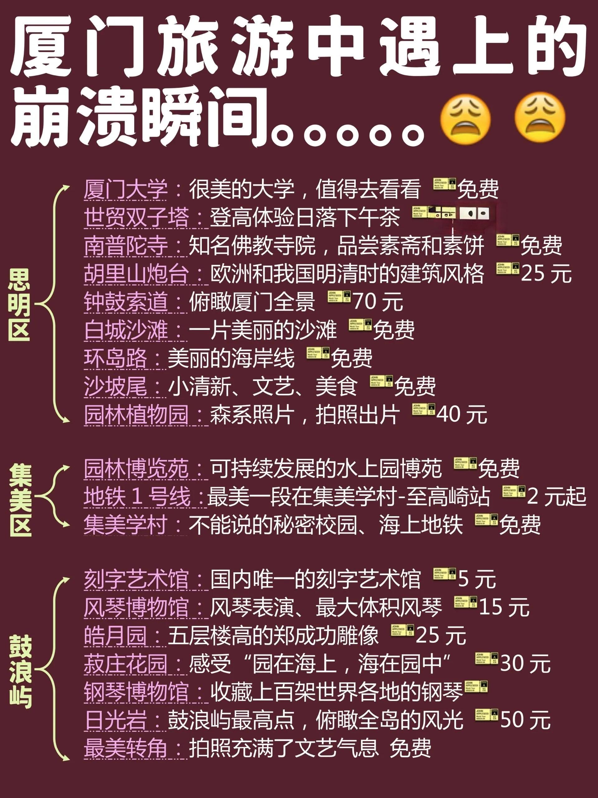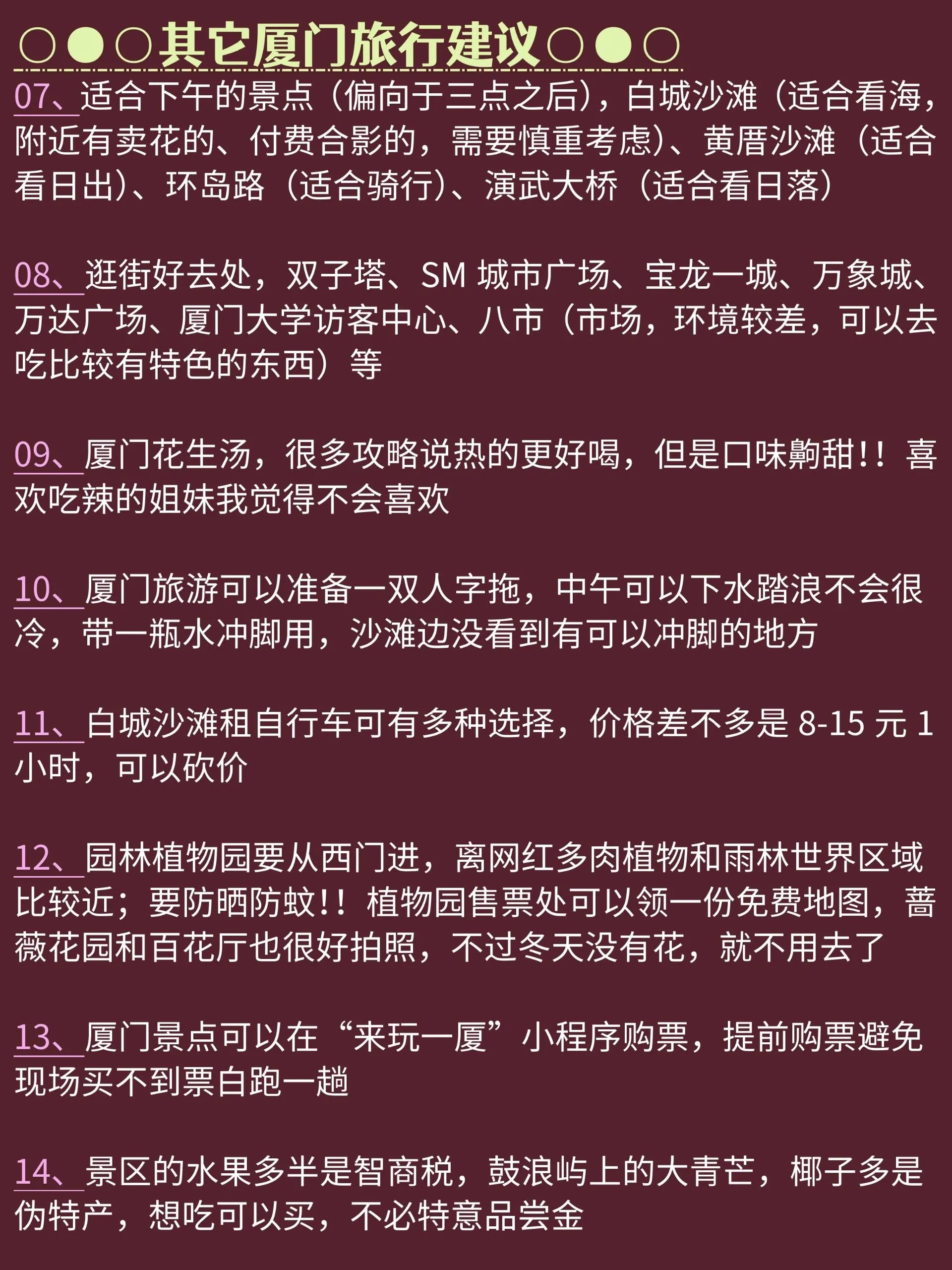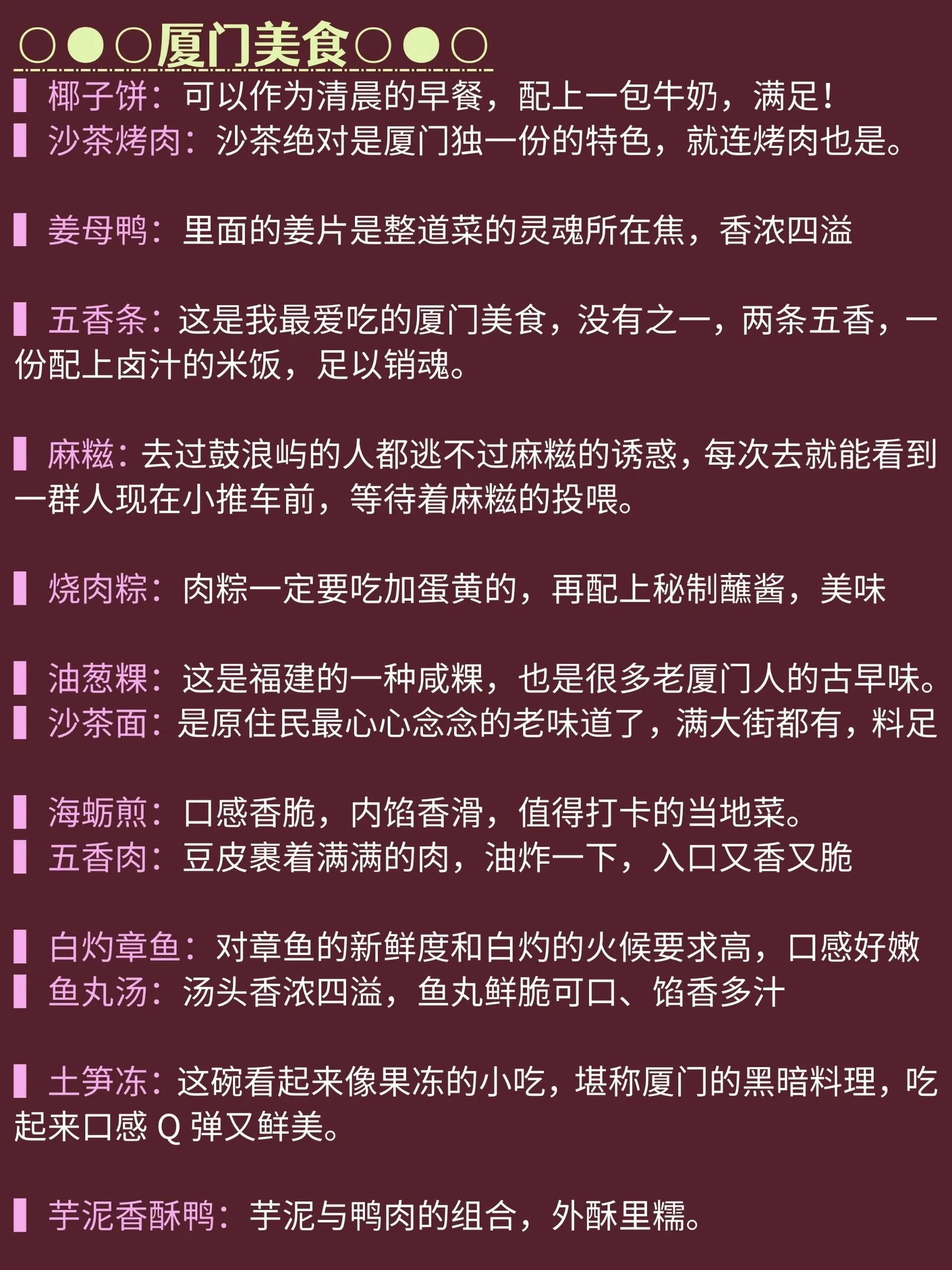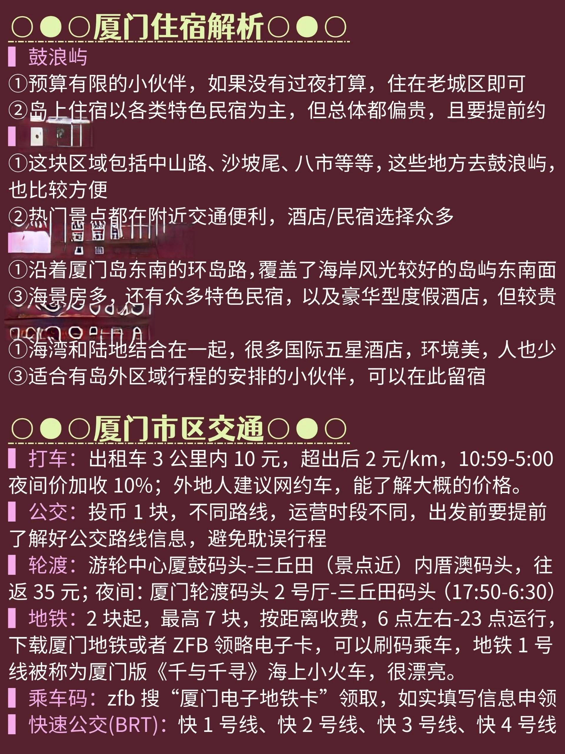 这些景点和交通信息希望能帮助你更好地规划厦门之旅。无论是人文景观、自然风光还是美食体验,相信你都能在厦门找到属于自己的精彩回忆。