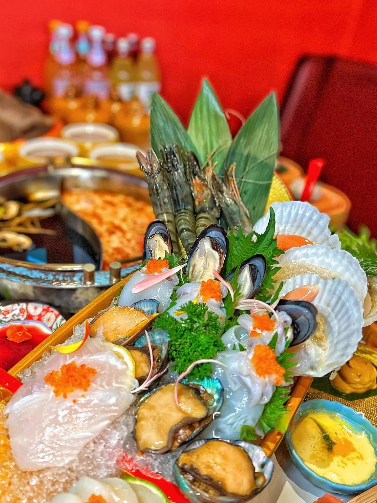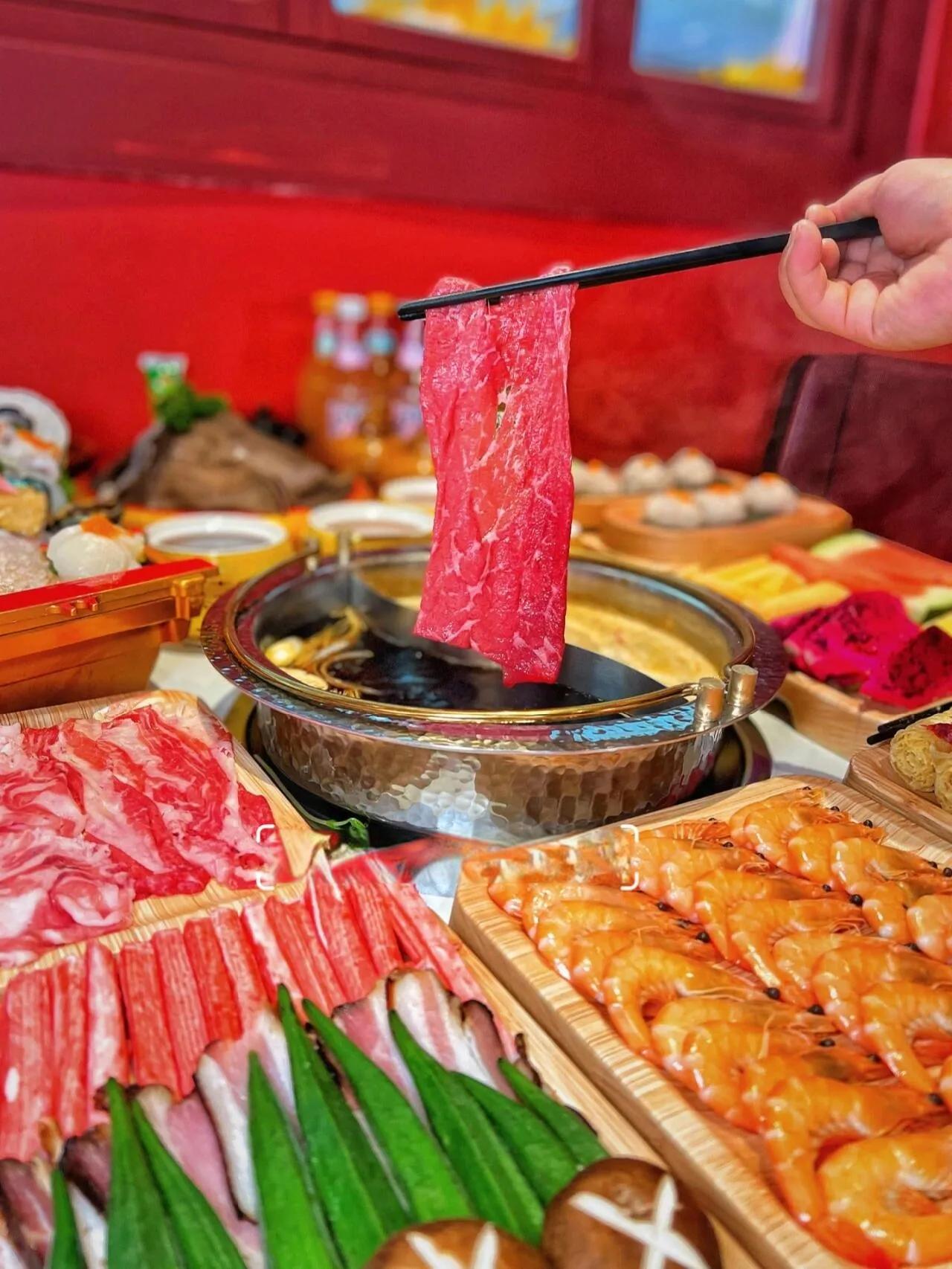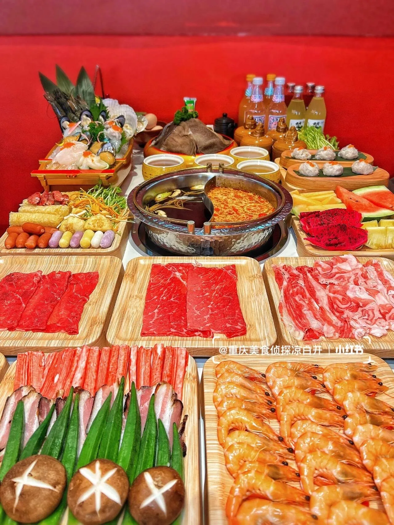 中午品尝了西南首店的兰小官寿喜锅自助,地道的日式锅物料理。澳洲M5谷饲牛肉、蒙古草原羊肉卷、霜降牛肩胛、黑毛牛卡卢比等各种肉肉无限畅吃好满足。还有big size黑虎虾、鲍鱼、扇贝等海鲜,以及好几柜的荤素菜品自助无限取,锅底还能双拼,一次就吃到日本寿喜锅和泰式冬阴功两种口味。
