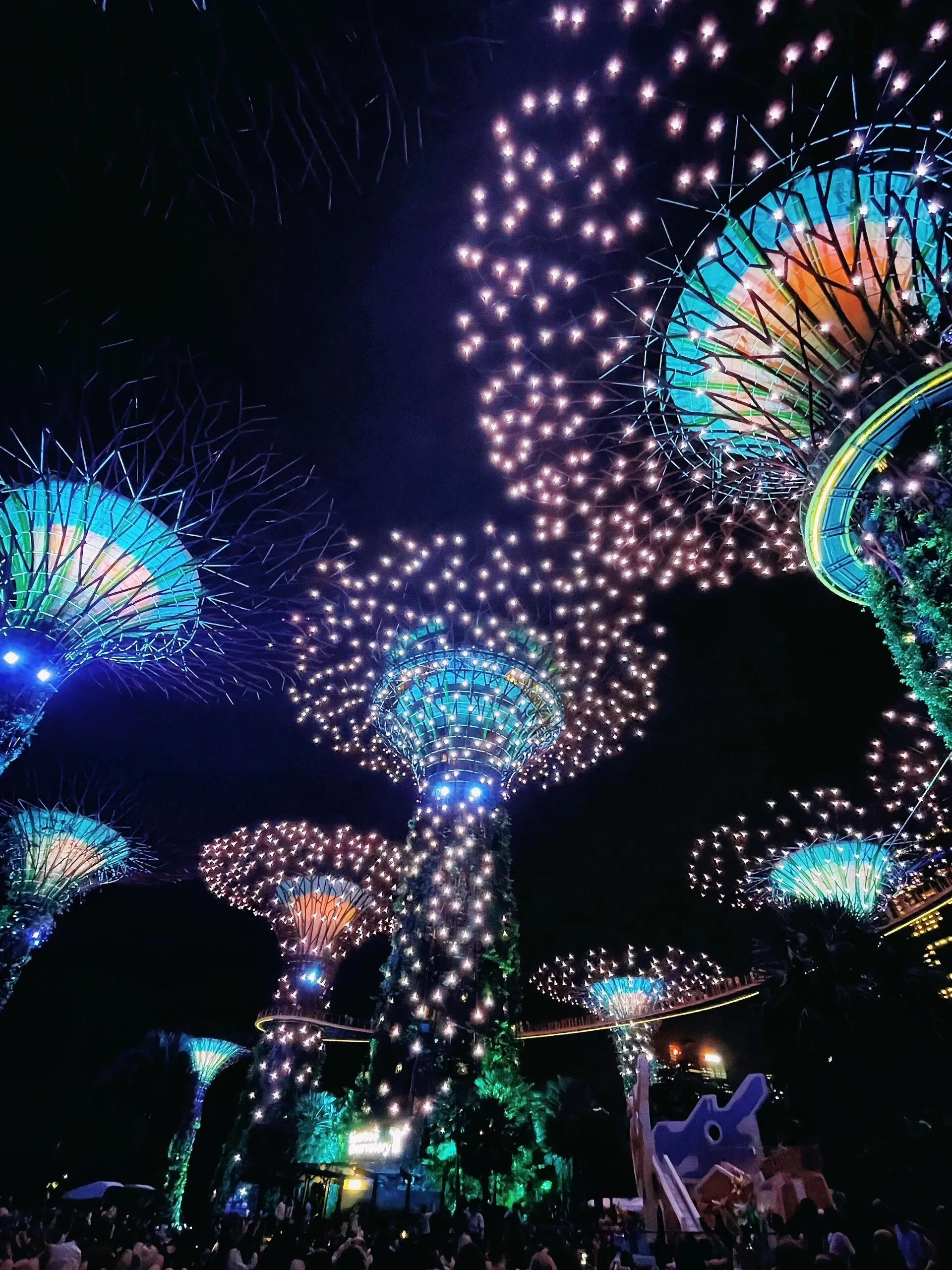滨海湾花园是下一站。可以在网上购买云雾林和花穹的套票。从牛车水乘坐地铁前往,游览时间约两小时。 晚上7:45和8:45有免费的灯光秀,非常值得一看 。