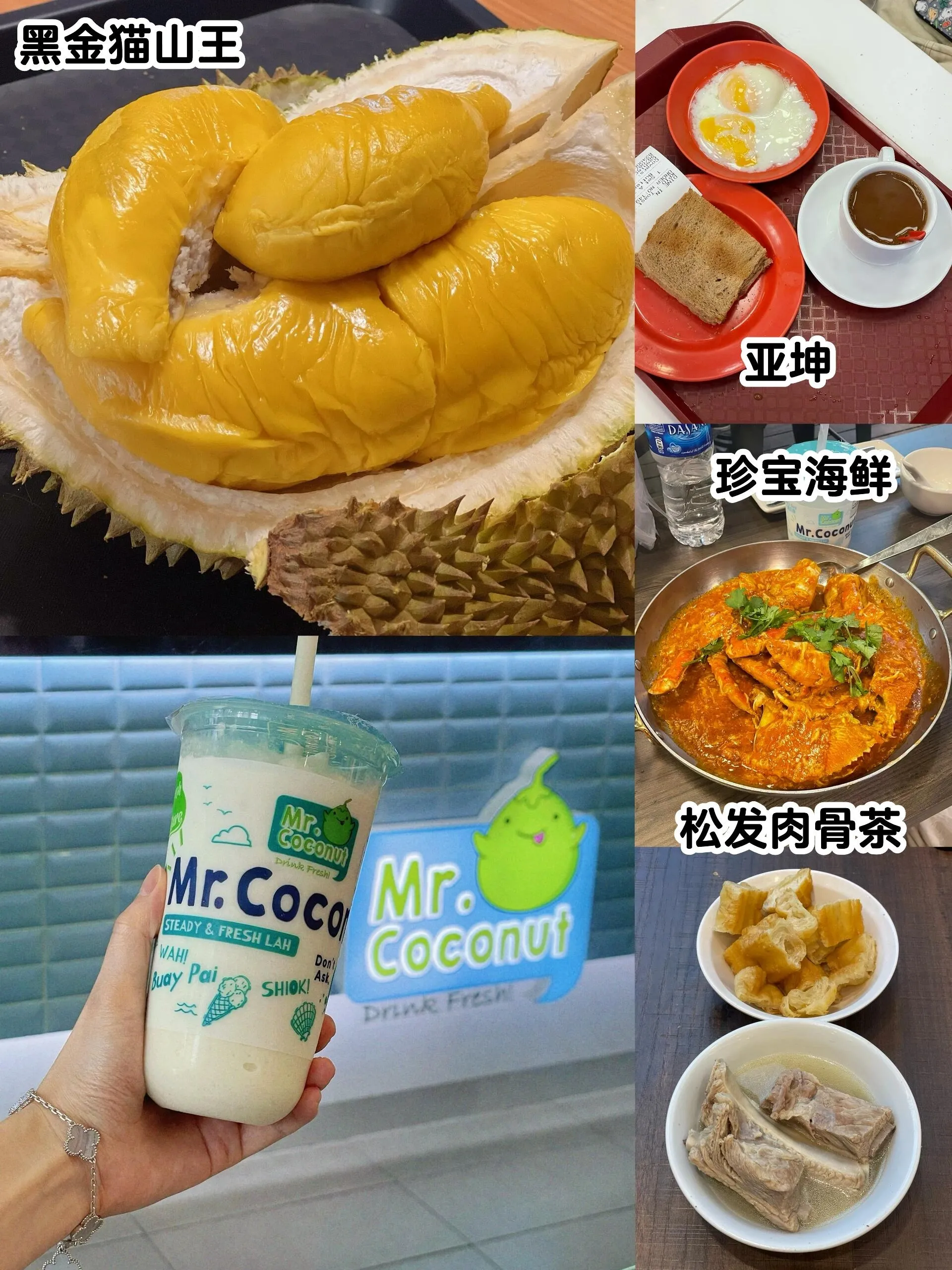 随后前往克拉码头,从警局步行4分钟即可到达。这里有著名的松发肉骨茶和珍宝海鲜。建议先品尝松发肉骨茶,晚上再回来享用珍宝海鲜。 肉骨茶的汤可以无限续,搭配油条更佳 。马路对面的Mr.coconut也值得一试,原味和牛油果口味都不错。