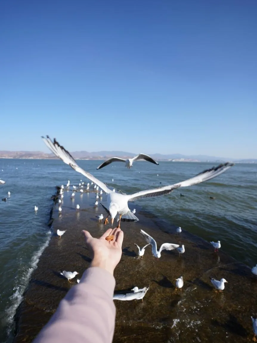 龙龛这里还是亲近海鸥的好地方。云南已成为西伯利亚海鸥的避寒胜地,从滇池到洱海,这里最适合与海鸥亲密接触。只需准备一些面包,海鸥就会热情地靠近。