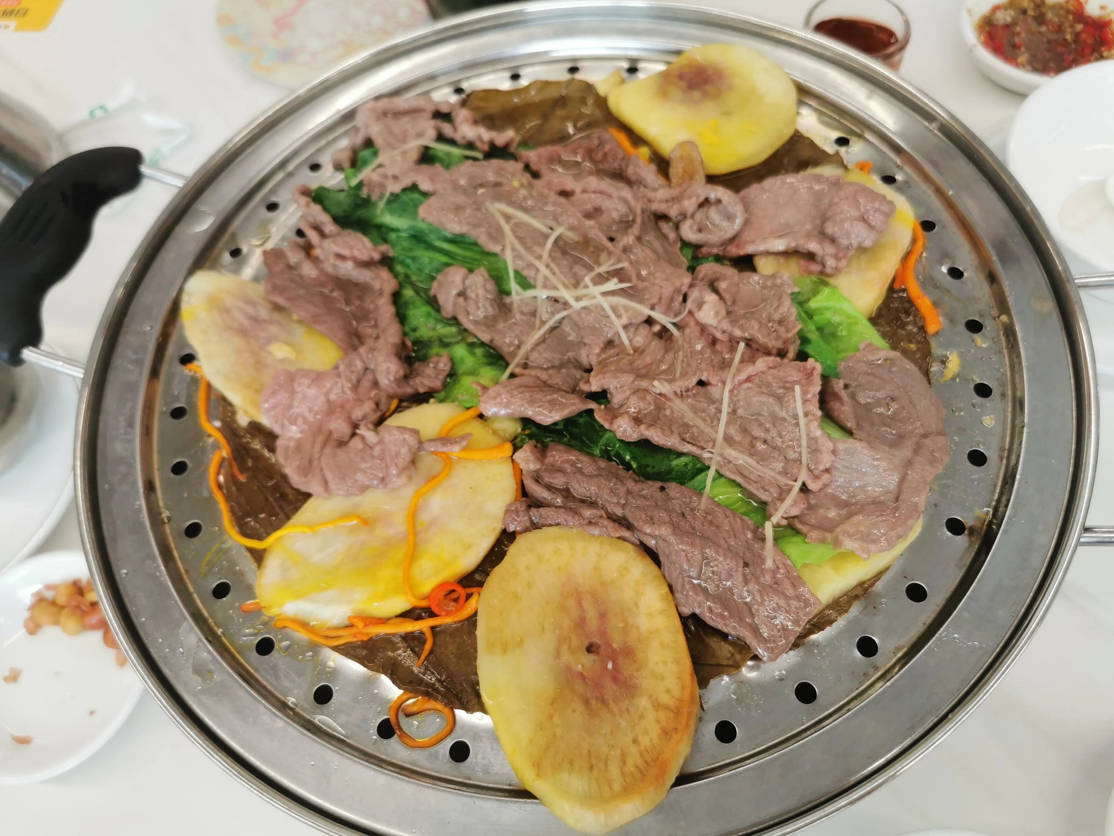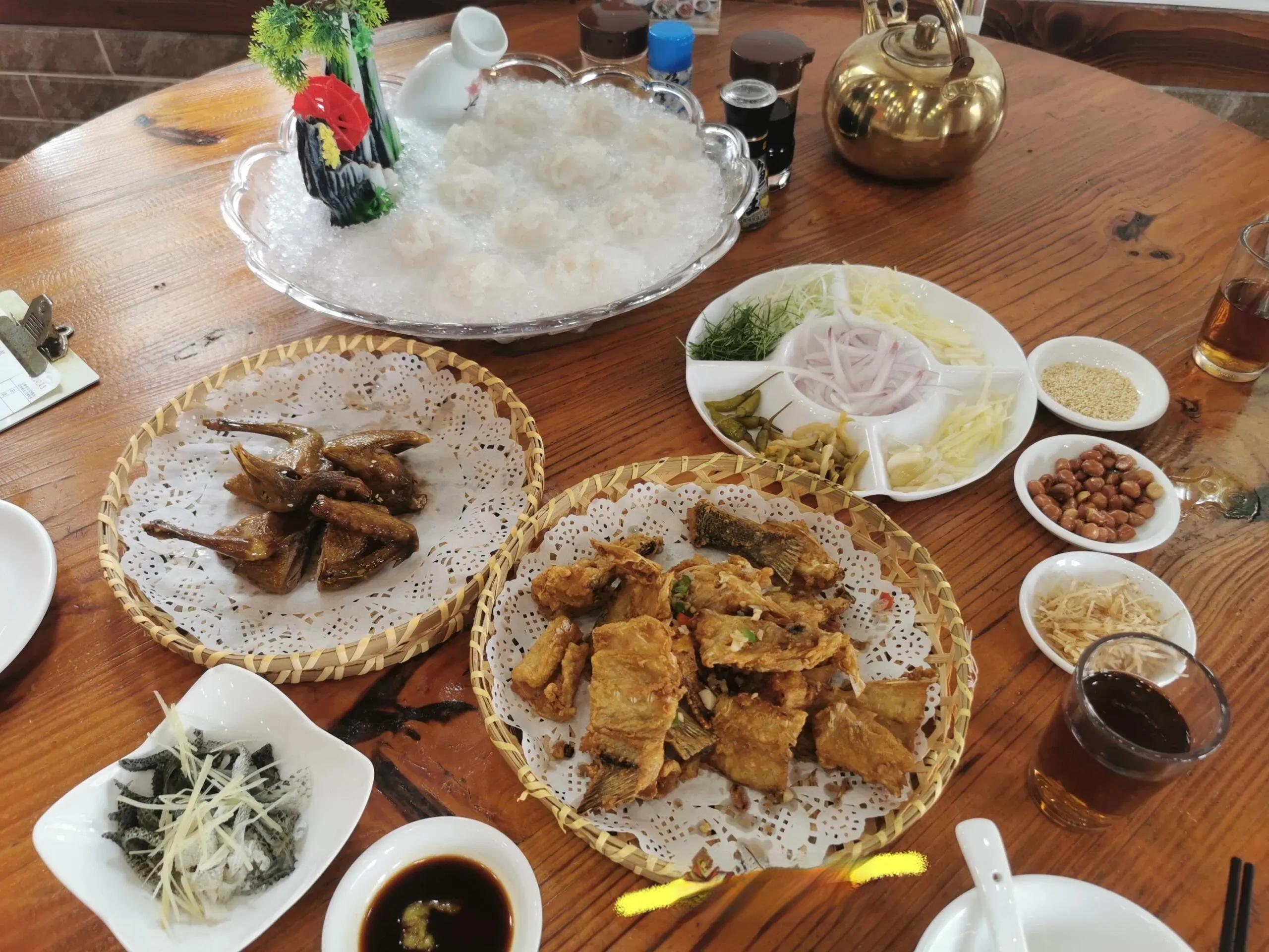 第二天上午先品尝了 桑拿鸡 。这道菜蒸煮时间较短,肉质Q弹,搭配酱油和沙姜食用,喜欢辣味的可以加些辣椒。随后前往 华盖山栈道 ,中午阳光强烈,温度较高。华盖山栈道下来便是 金榜街 ,在此品尝了双皮奶和炸牛奶,后者外酥里嫩,口感极佳。