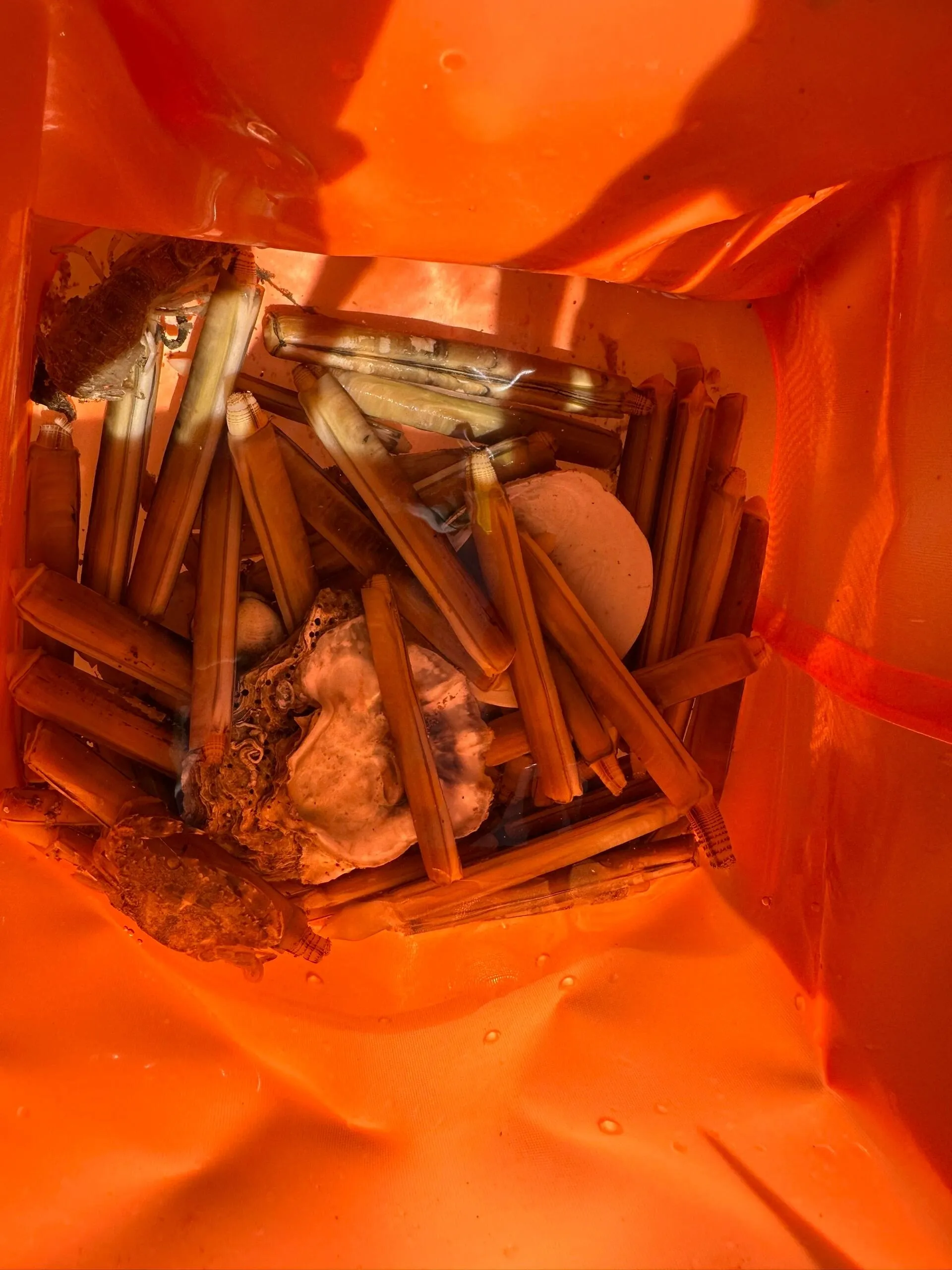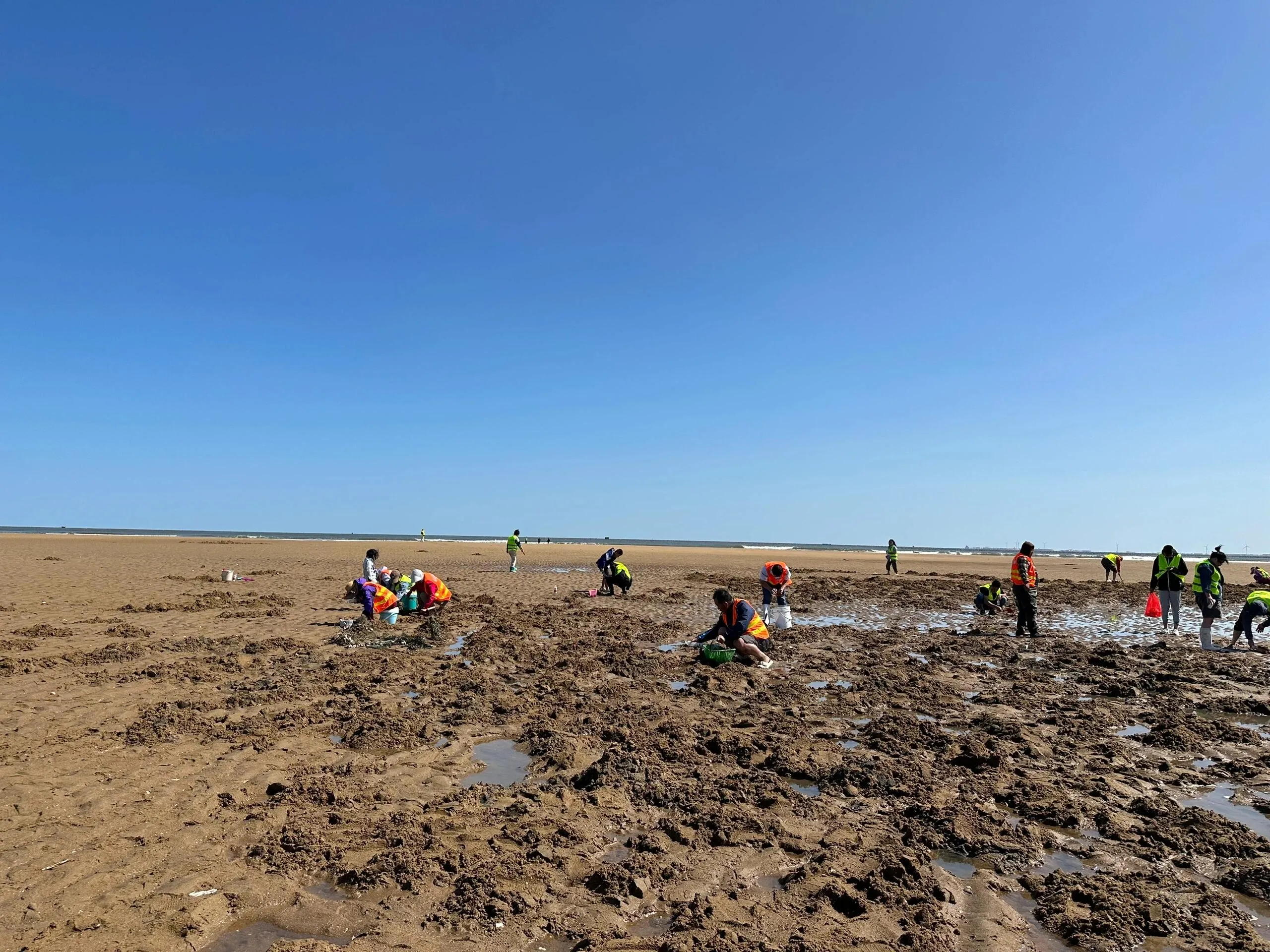 这里最适合赶蛏子,还有小螃蟹、蛤蜊、皮皮虾等