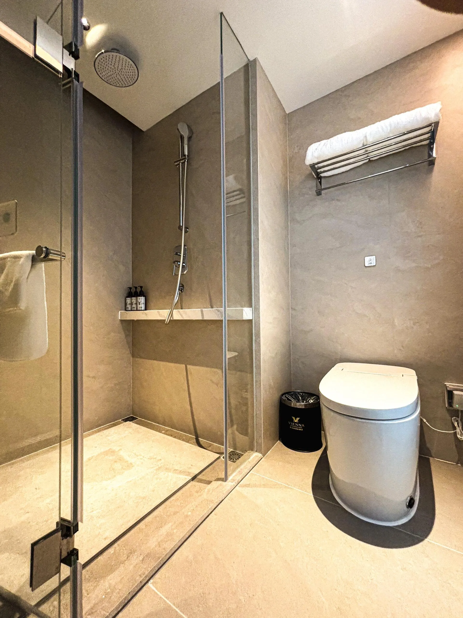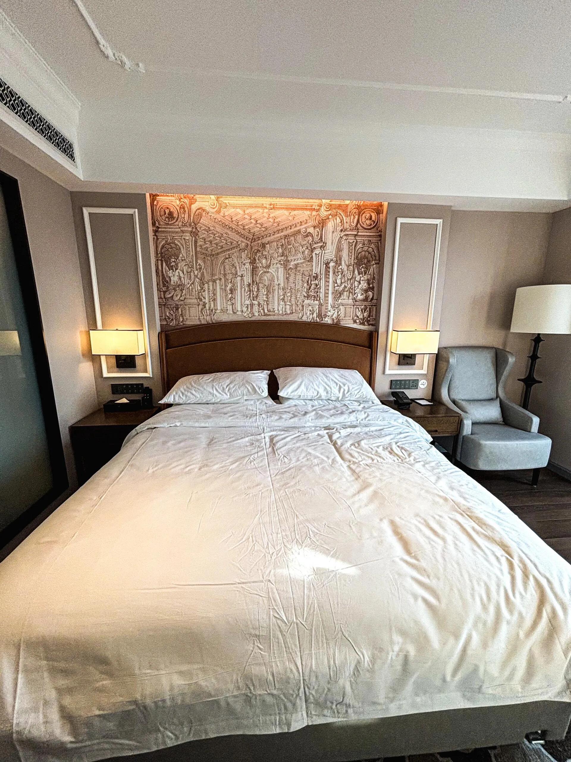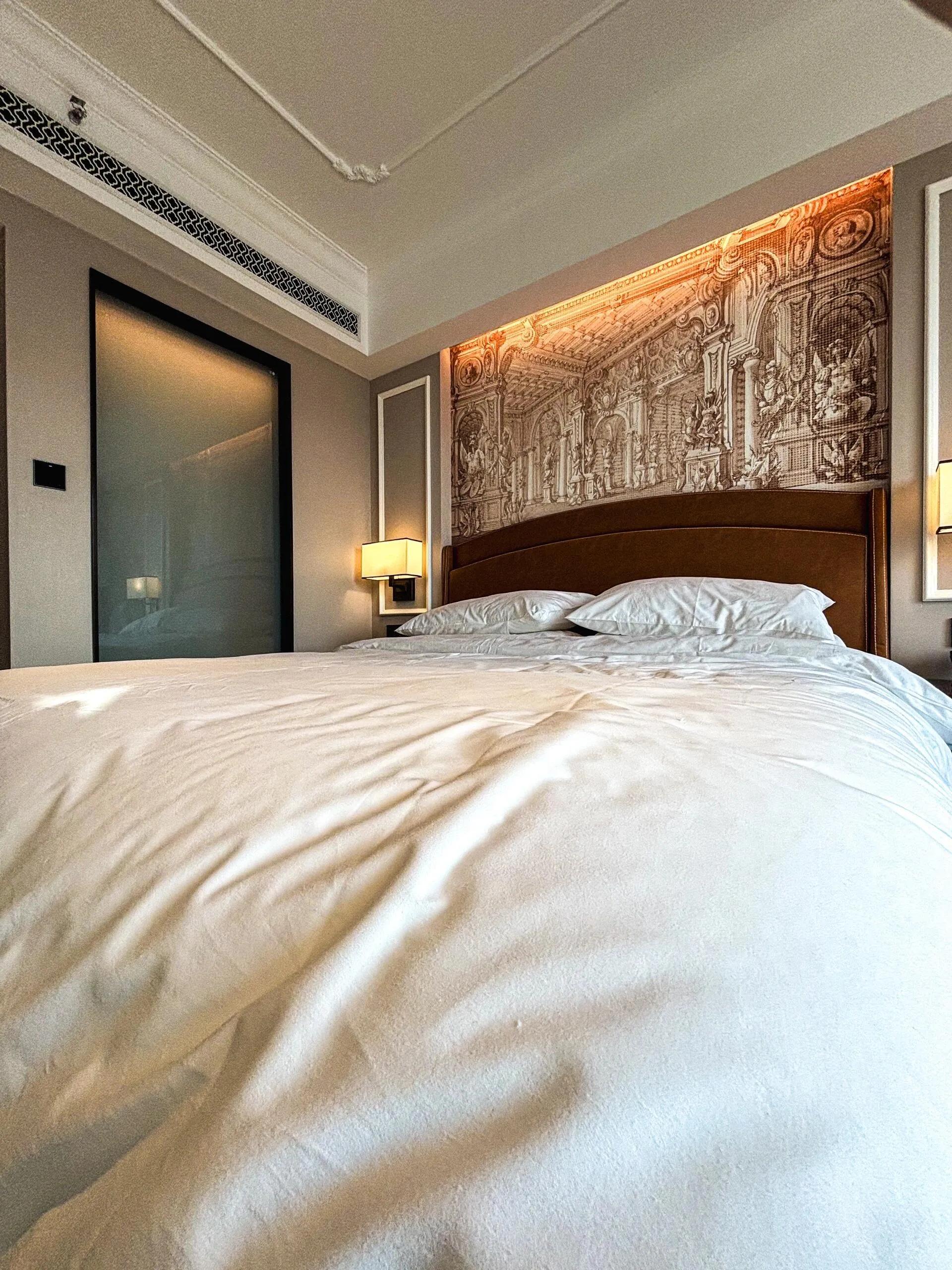 客房内部配置豪华, 55寸智能投屏电视和顾梦思床垫确保了舒适的休息环境 。一楼的咖啡厅和公共办公区为商务旅客提供了便利。对于自驾游客,酒店自带停车场和充电车位,解决了停车难题。