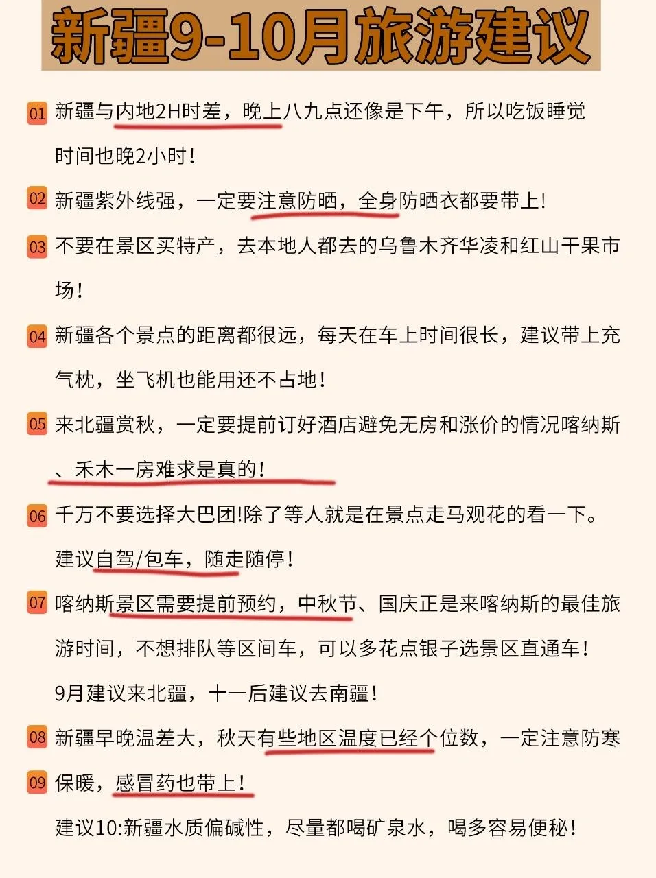 新疆是一个美丽而广阔的地方,如果没有做好充分的准备,很容易错过许多精彩。这份攻略汇集了新疆9-10月份旅游的重要信息,希望能为计划前往新疆的游客提供帮助。