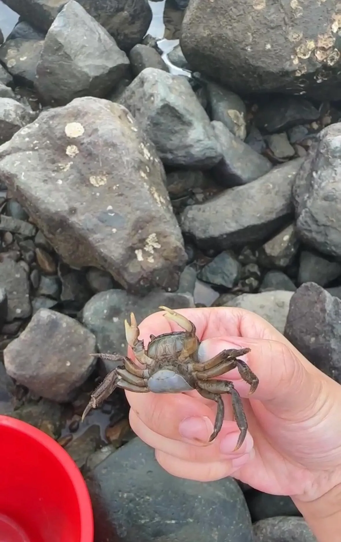 清晨,长江澳刚退潮,天气晴好。带上小桶赶最后一波海,轻松抓获许多小螃蟹。