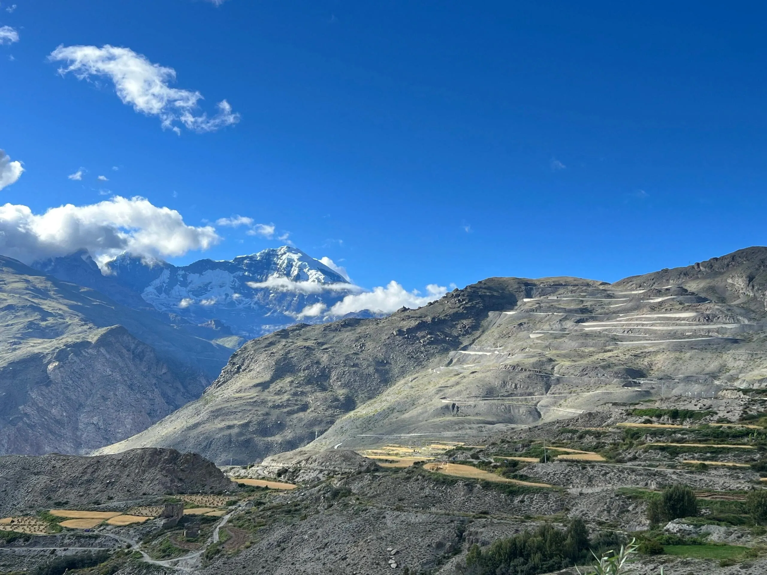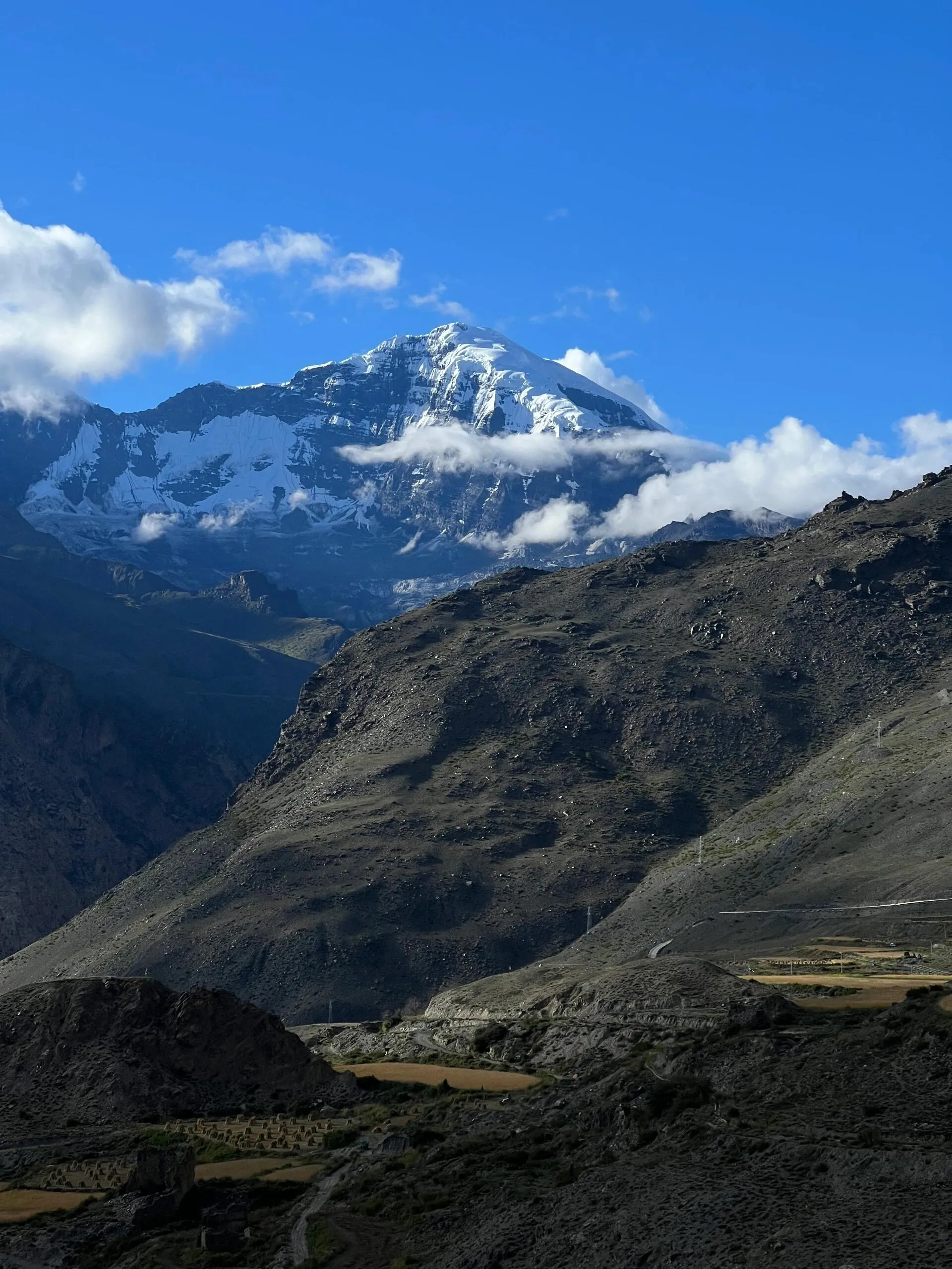 翻越海拔5363米的蒙达拉山口后,两座雄伟的雪峰映入眼帘——库拉冈日峰(7538米)和卡热疆峰(7221米)。它们如同守护神,镇守着洛扎县的大门。离开洛扎县进入措美县时,还有打拉日峰(6785米)为骑行者送行。