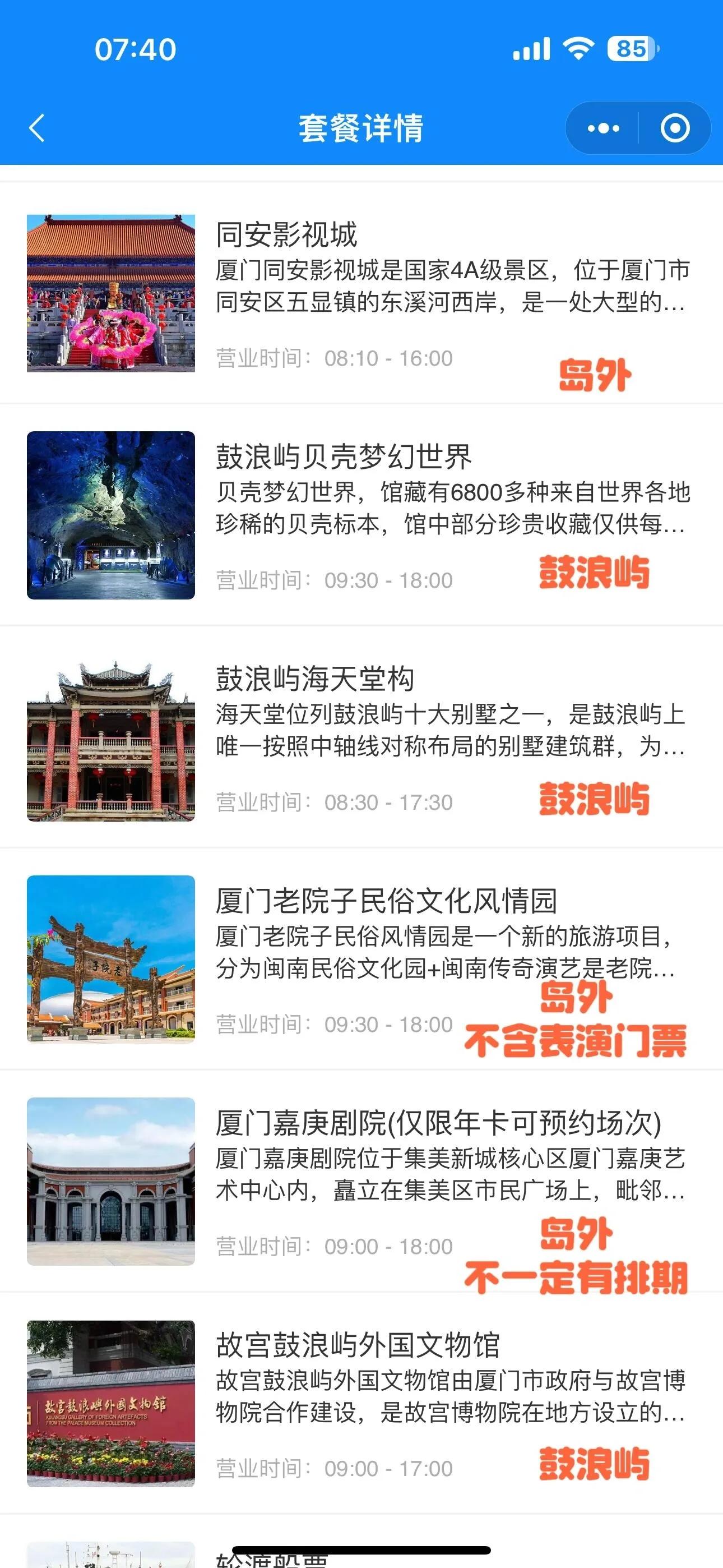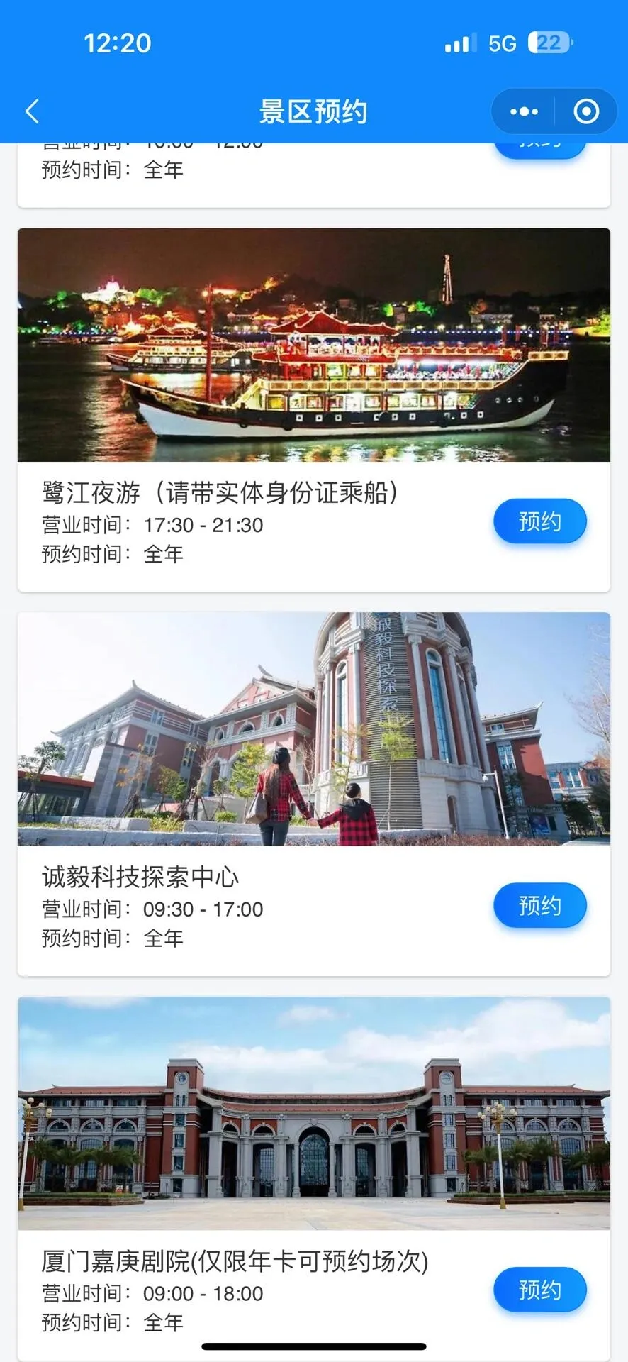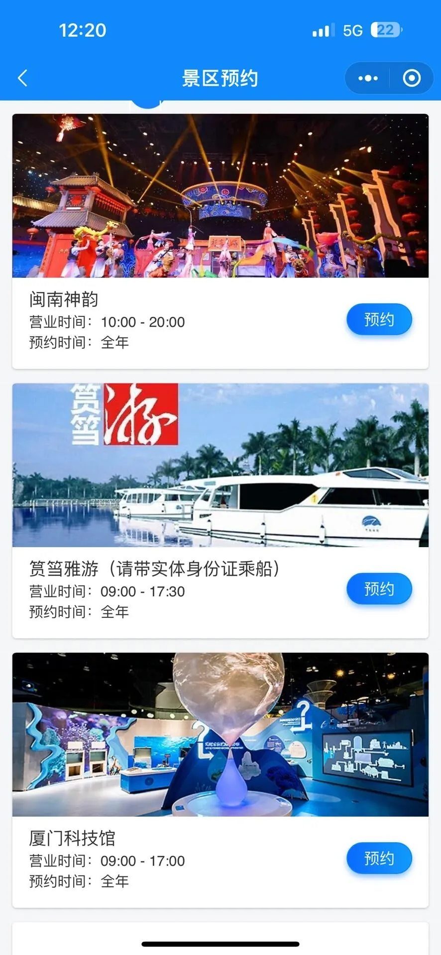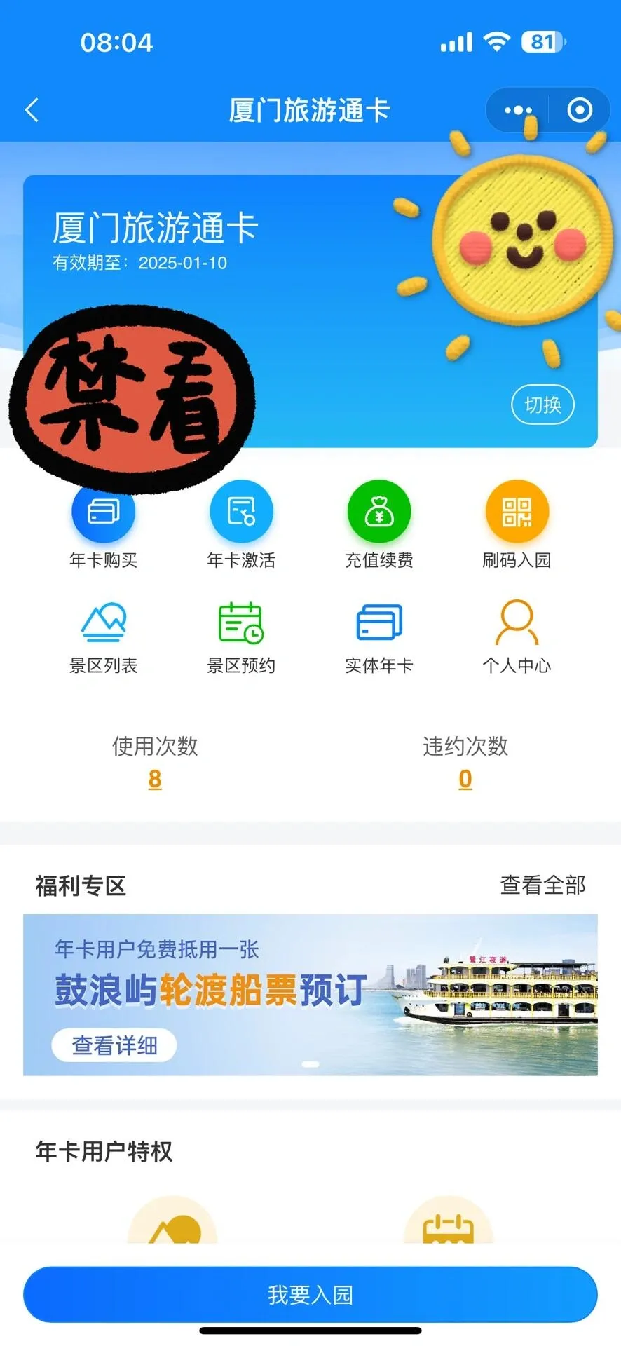 如果你想去的景点需要提前预约,建议先不购买或不激活卡片。可以先在“厦门旅游通卡小程序”(注意不是公众号)中查看景区预约情况,确认有预约名额后再激活。未激活的年卡是可以退费的,激活后就不能退费了。