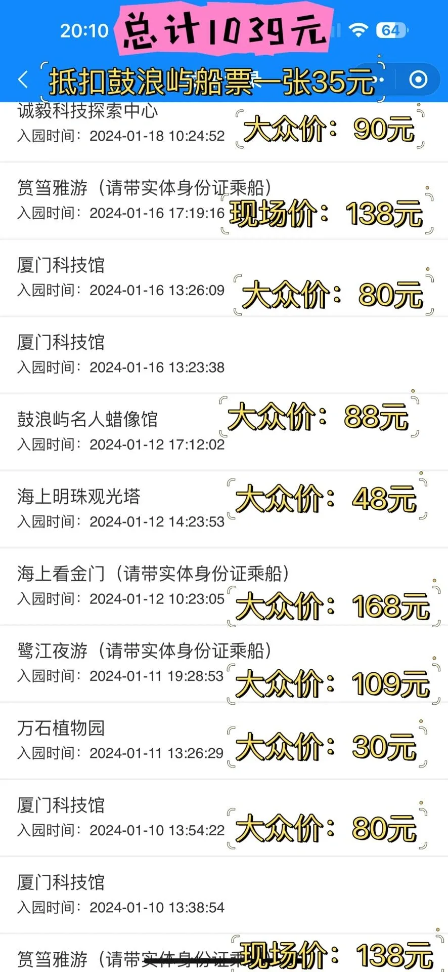 个人使用经验显示,一个人可以省下好几百元。而且这个卡一年内无限次使用,如果有机会再来一次厦门,省得会更多!