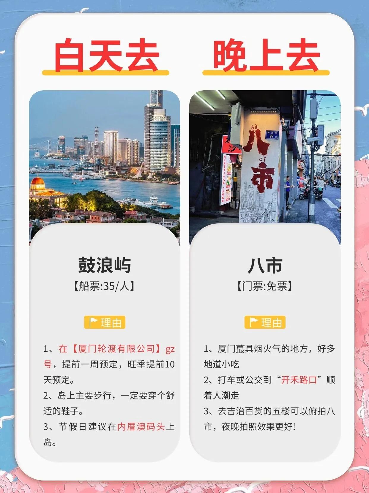 第二天:鼓浪屿(内厝澳码头) - 日光岩 - 菽庄花园 - 大德妃浴场 - 皓月园 - 最美转角 - 三丘田码头(离岛) - 八市