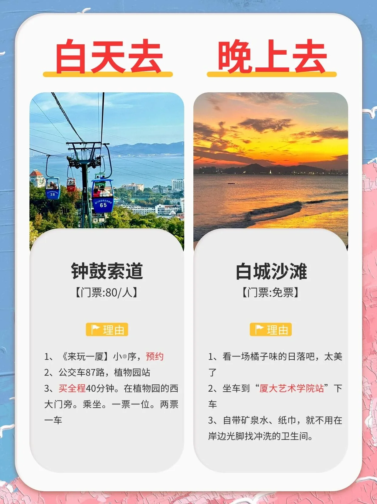 第三天:钟鼓索道 - 南普陀寺 - 厦门大学 - 白城沙滩 - 演武大桥 - 沙坡尾