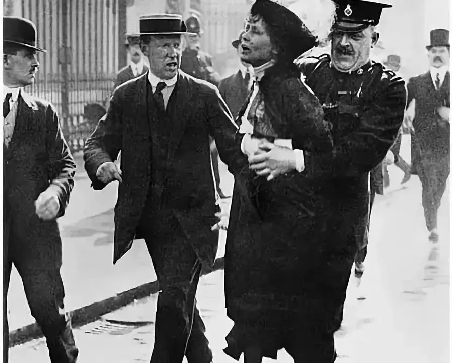 女权运动标志性画面——潘克赫斯特被捕场景