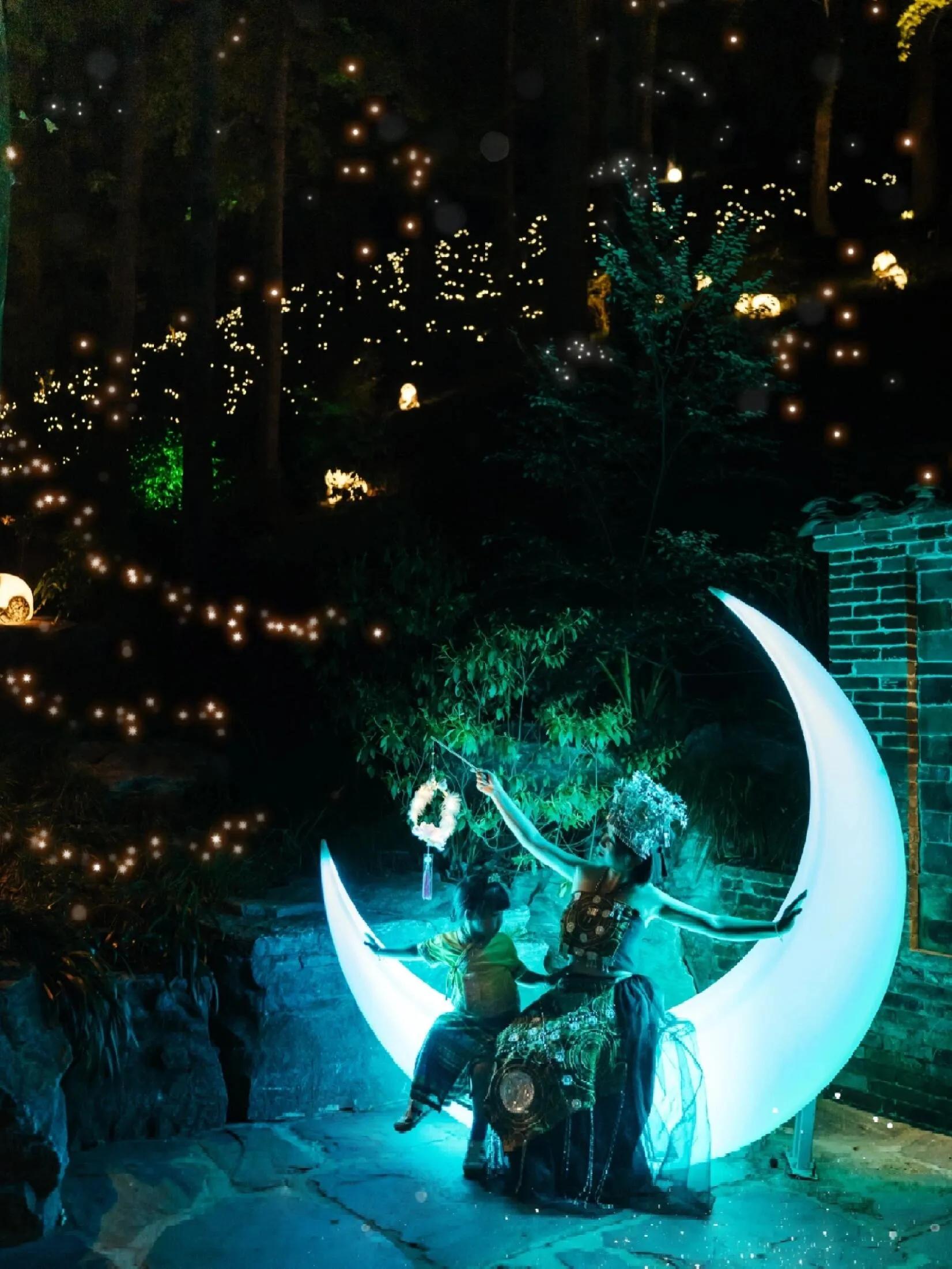 白天和夜晚都很适合拍照,特别是傍晚灯光亮起时,整条街道张灯结彩,挂满枝头的灯笼点亮小镇的夜色,氛围感十足。