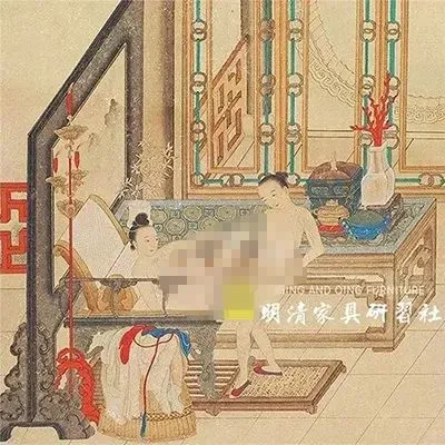 在一些古代春宫图中可以发现其真正的使用方式,除了可以让坐在躺椅上的女性有小腿的着力点外,这些扶手也能作为男性手部支撑的点。