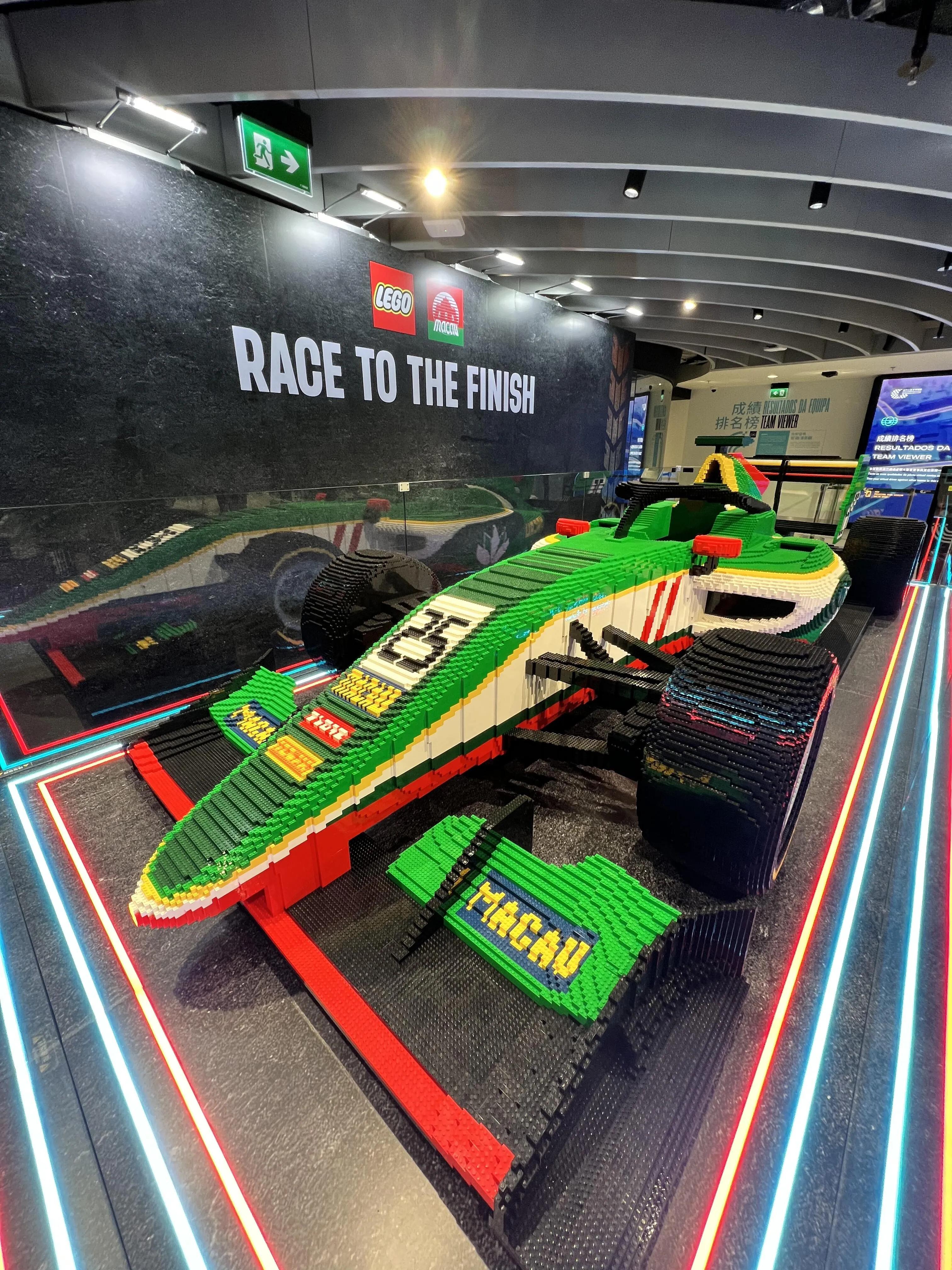 地库层展示了东望洋大赛和澳门GT杯的相关内容。这里有放映厅和赛事体验区。特别值得一提的是,由乐高专业认证大师洪子健为博物馆打造的三级方程式赛车模型。在特展区,游客可以亲手用乐高积木拼装赛车,并在斜台上测试赛车的性能。