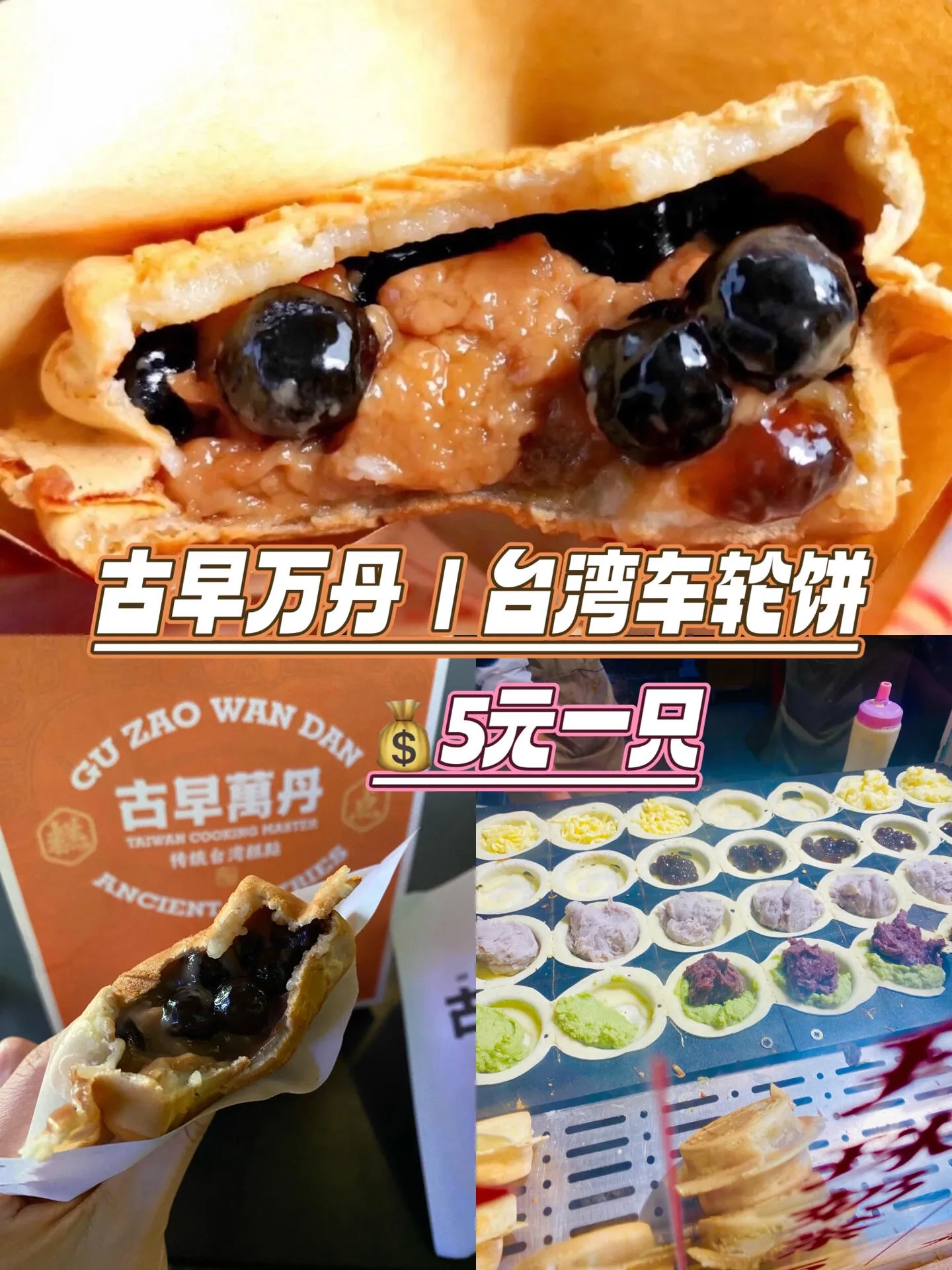 吃完咸味,我们买了古早万丹的车轮饼当甜点,花了10元。我们选了珍珠和红豆口味,刚出炉的车轮饼奶香十足,馅料也很足。虽然常常要排队,但移动速度很快,而且便宜好吃,很值得。