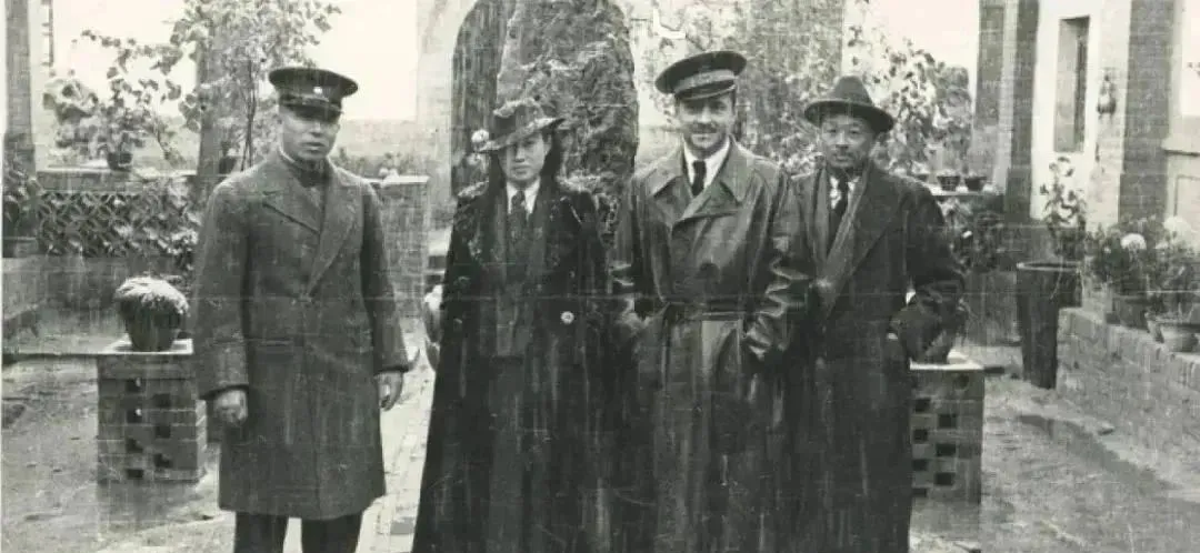 张学良与赵四小姐在雨中合影留念。