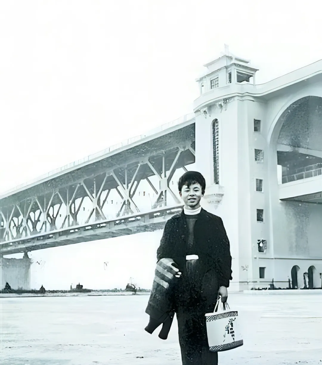 18岁的雷锋在武汉长江大桥前的留影
