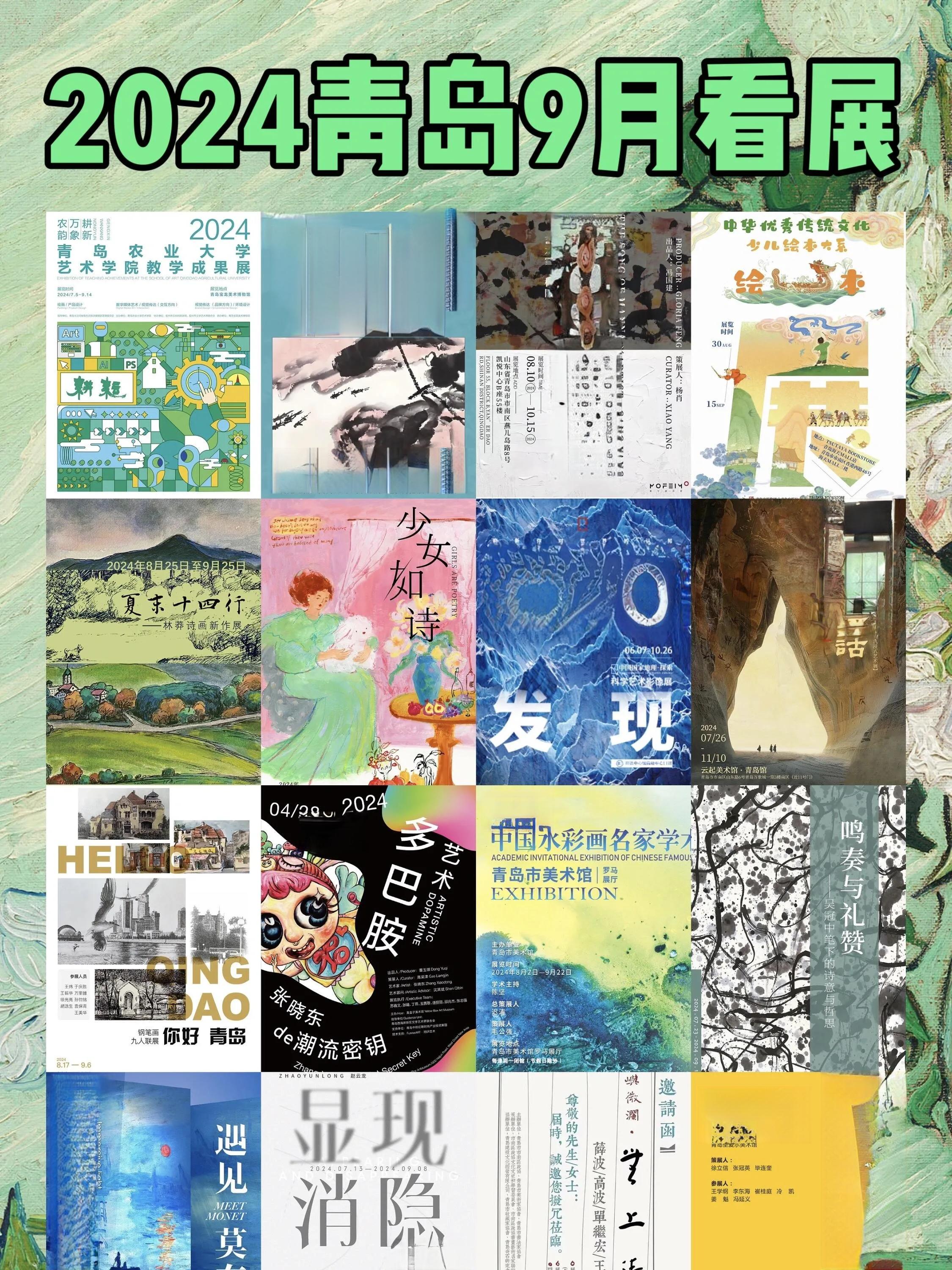 青岛梵高星空艺术馆有常设展览。富邦红木·古玩城的“涛声乍起|刘涛大写意画展”将于9月3日开幕。
