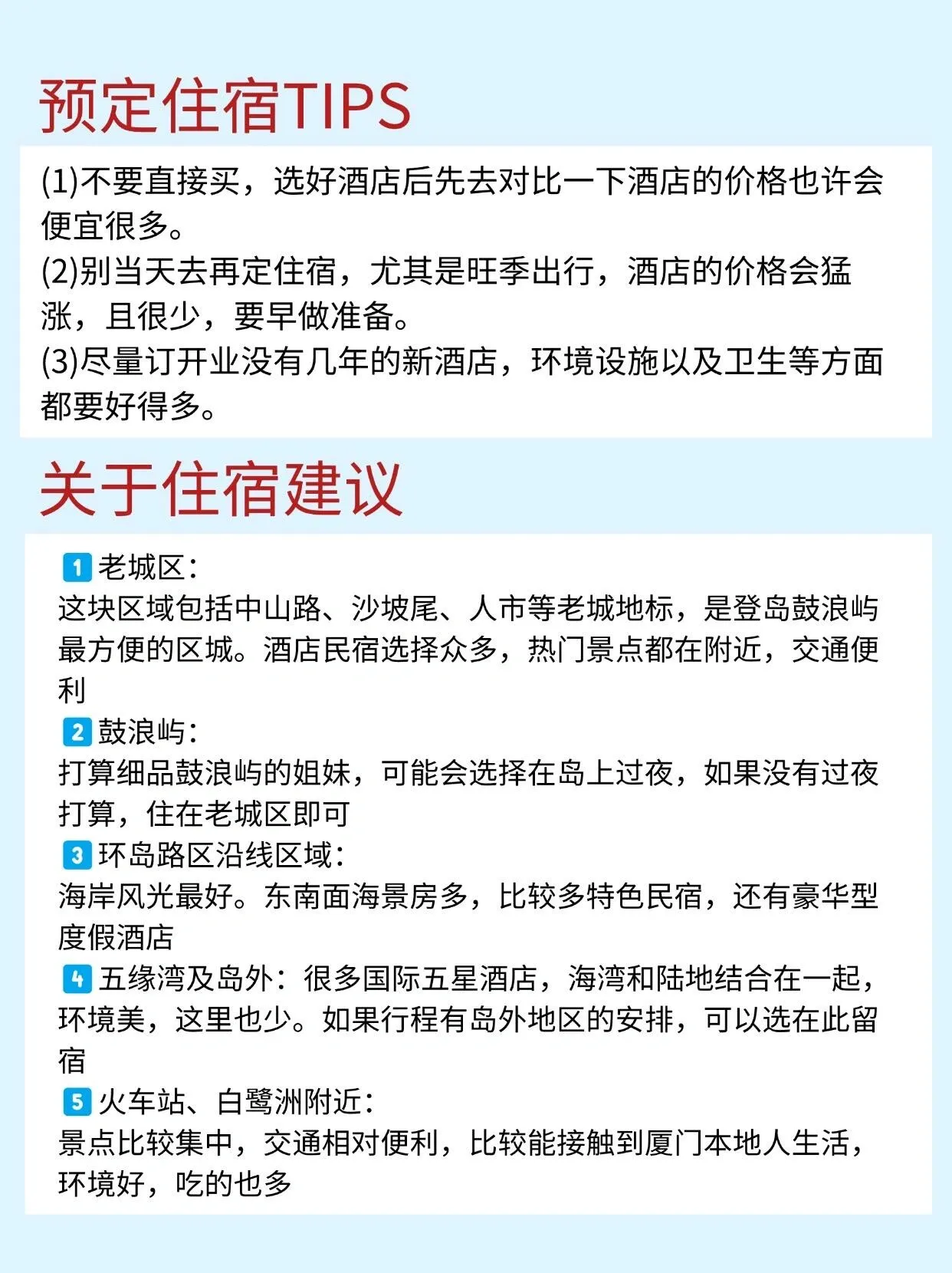 推荐选择中山路附近的住宿,交通便利,去各处景点都很方便。