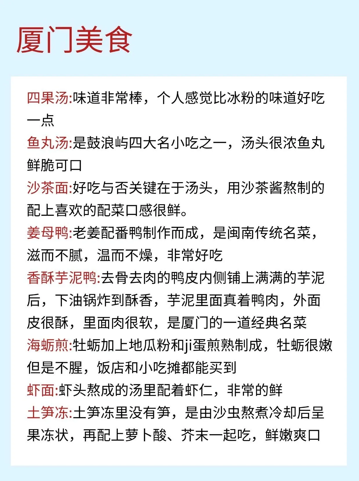 厦门美食推荐: