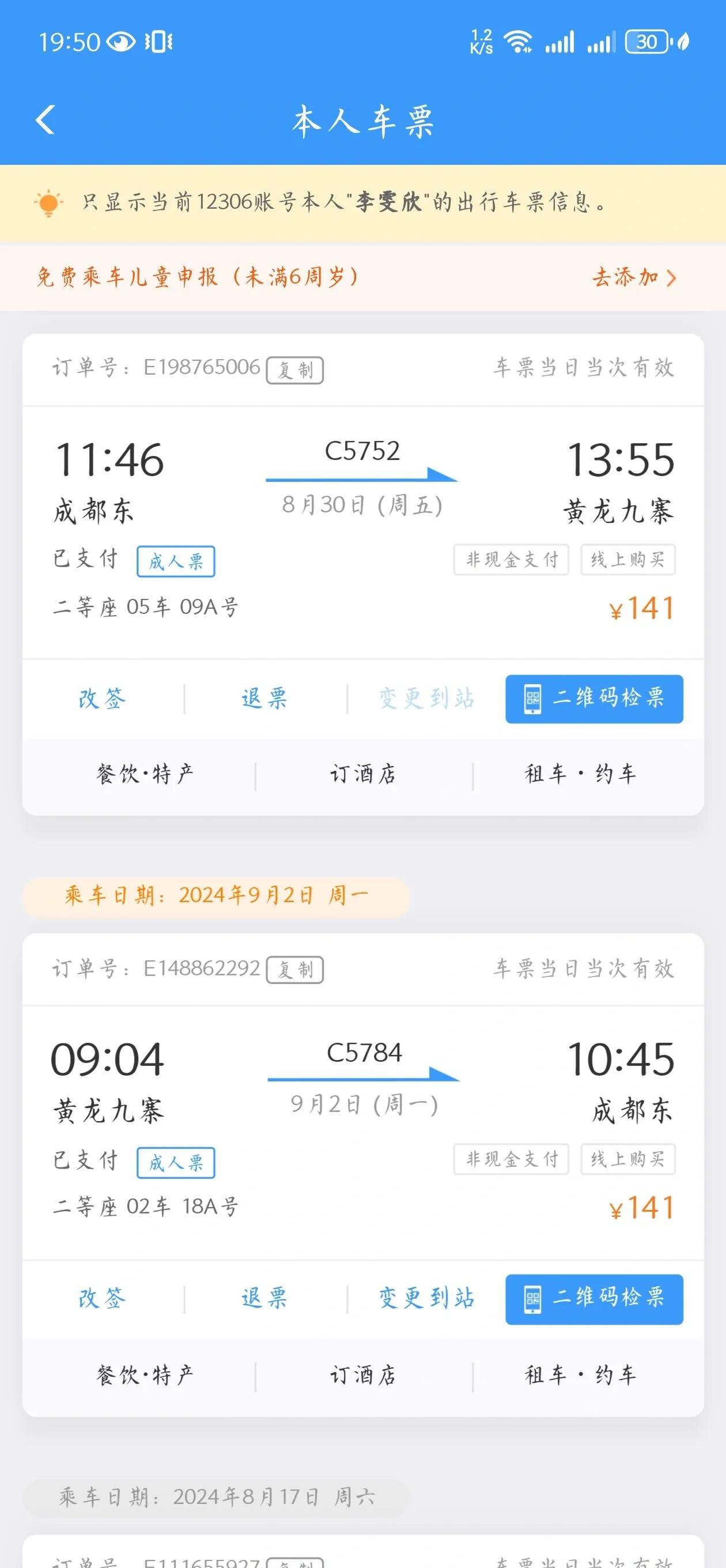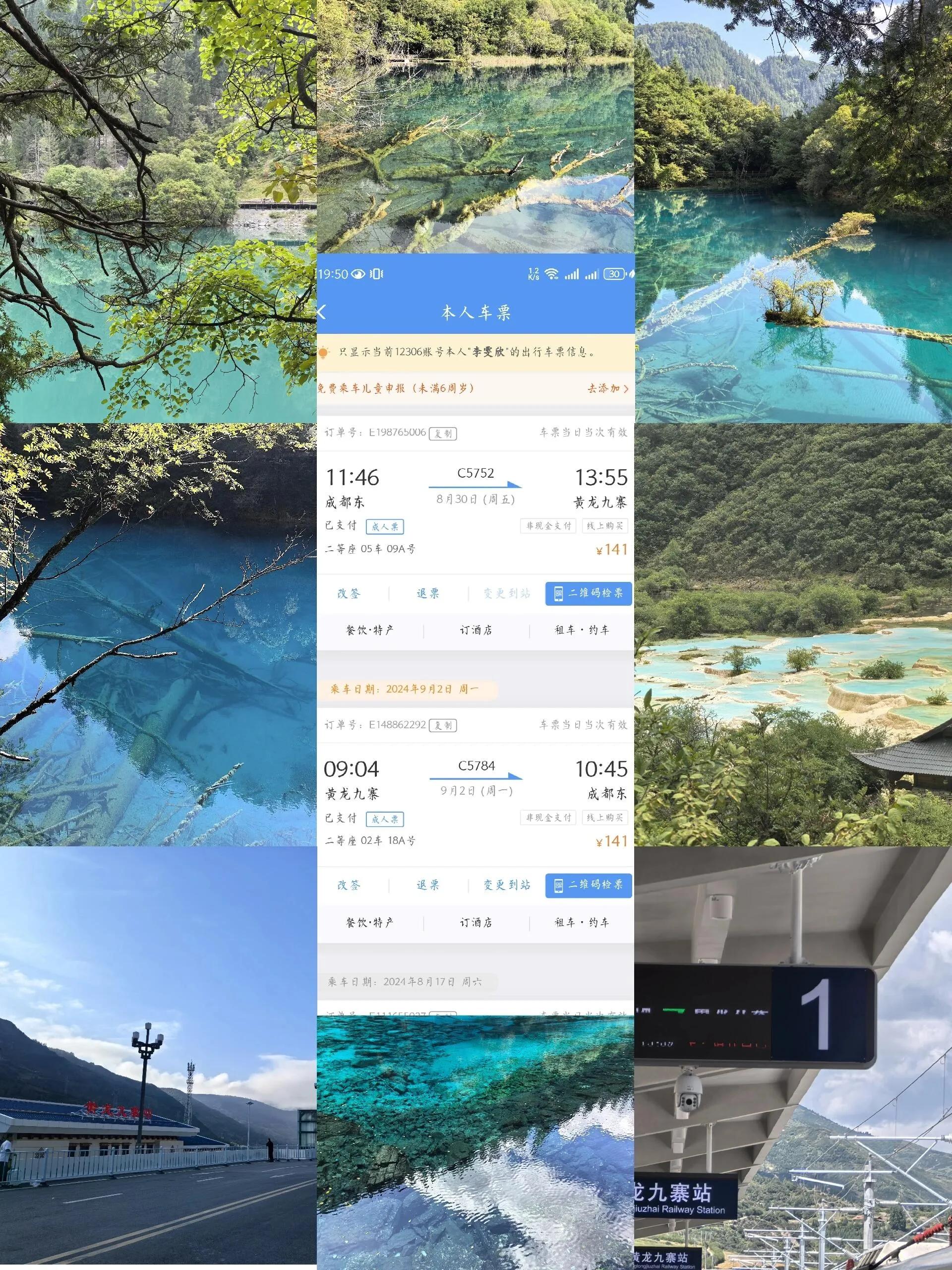 黄龙九寨站 → 九寨沟 → 黄龙 → 川主寺 → 黄龙九寨站
