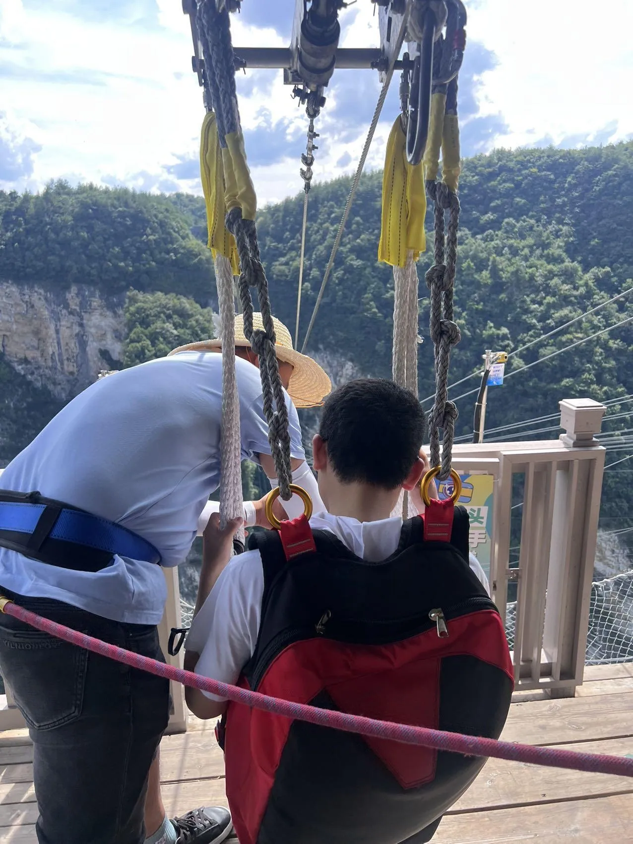 接下来的行程精彩纷呈:在桥东体验中心体验爱享飞VR,仿佛置身峡谷深处;高空滑索让我如鸟儿般自由飞翔;一线天滑道带来速度与激情;彩虹广场欣赏惊险刺激的蹦极表演;乘坐寻宝电梯深入探索大峡谷。