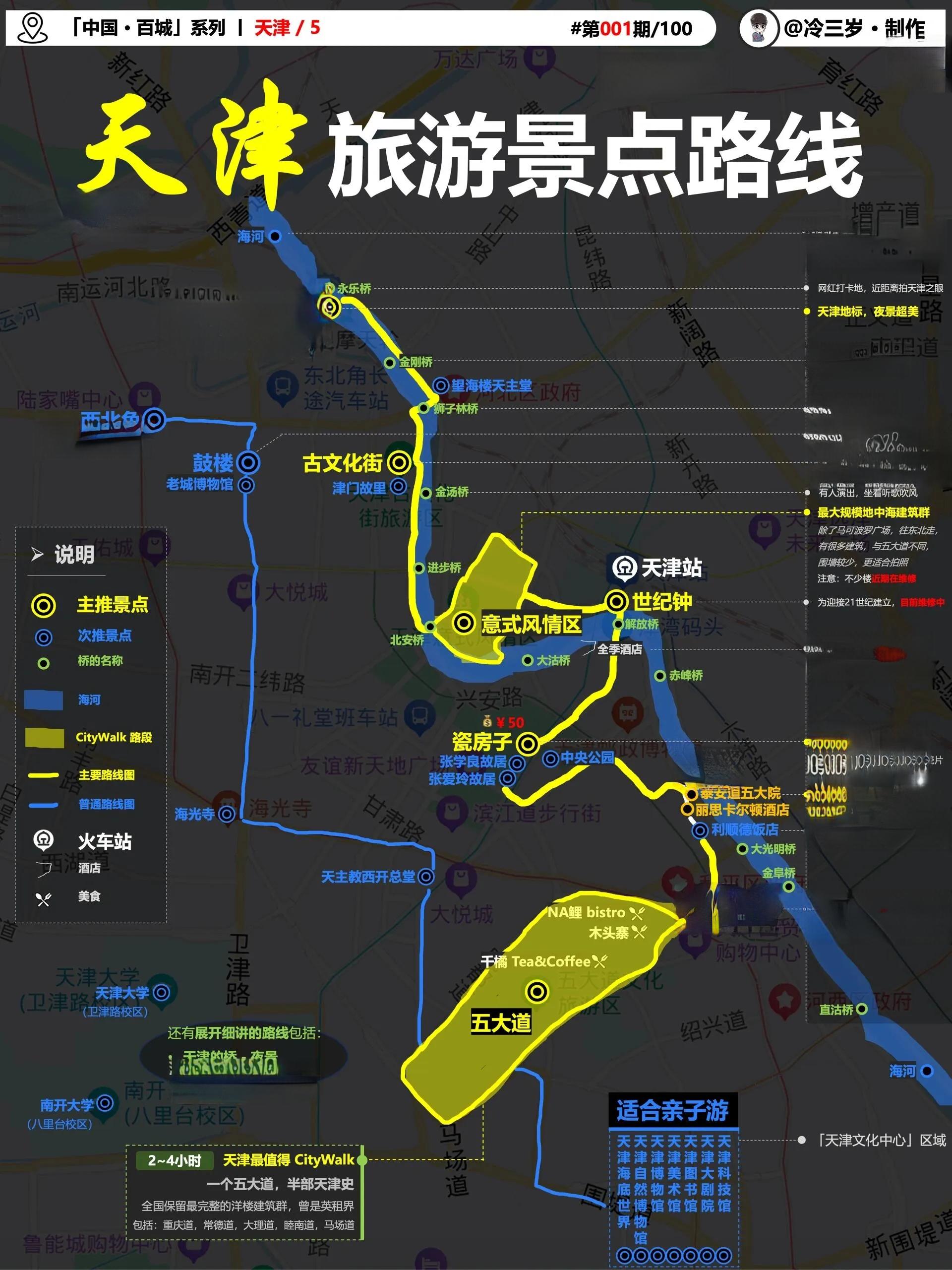 作为一个去过天津多次的旅行爱好者,我终于整理出了一份天津市内6区的硬核旅游攻略和路线地图。希望这份攻略能对大家有所帮助。
