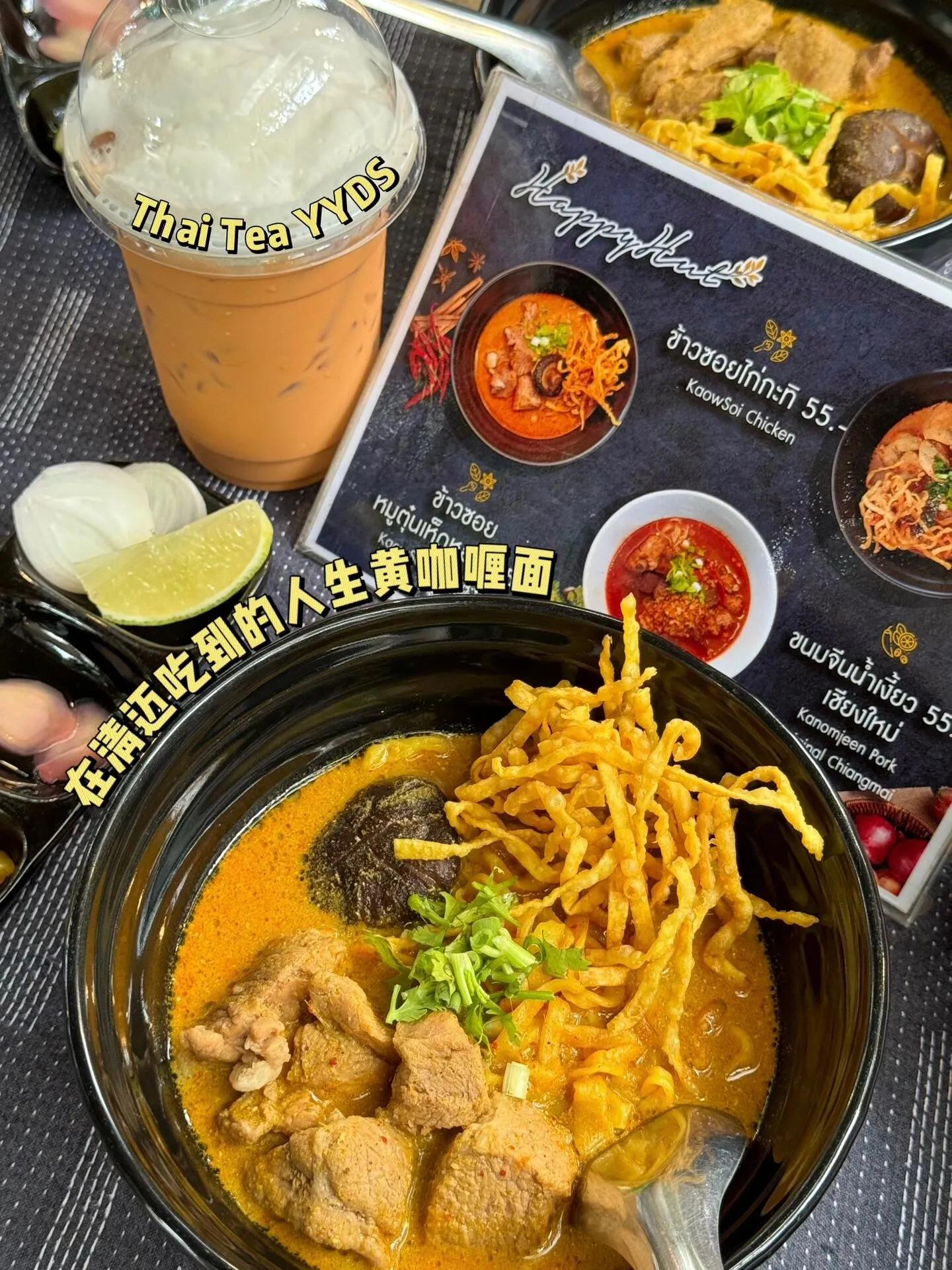 清迈大学后门夜市的打抛饭绝对是不容错过的美食体验。 这里的牛肉双蛋打抛饭,小辣口味,味道令人难忘。 如果你喜欢咖喱,不妨前往艺术村集市附近的Happy Hut ,他们的黄咖喱面堪称人生美味,搭配Thai Tea更是绝配。老板的热情服务也为用餐体验增色不少。